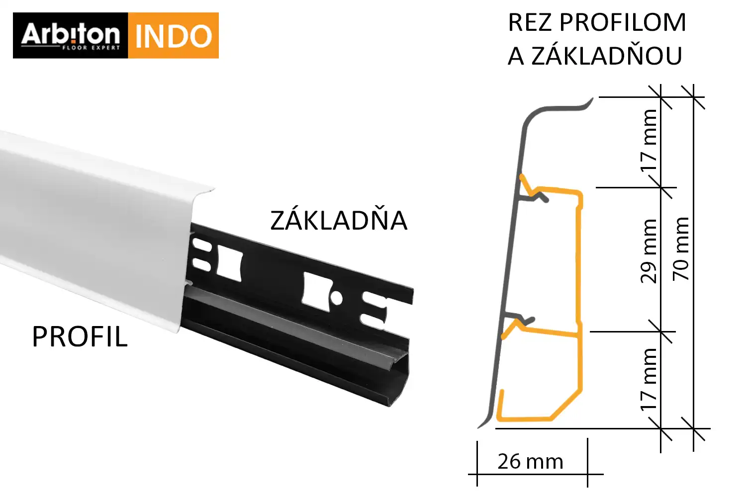 Podlahová lišta ARBITON INDO Wood effect je novinkou, která dokonale imituje strukturu dřeva. Lišty jsou flexibilní a mají oddělené kanálky pro vedení kabelů. Vyznačuje se rychlou montáží i demontáží díky profilu, který se zacvakne do základny. Bohatá paleta barev a dekorů je schopna uspokojit i náročného zákazníka, který hledá kvalitní náhradu dřevěné lišty.