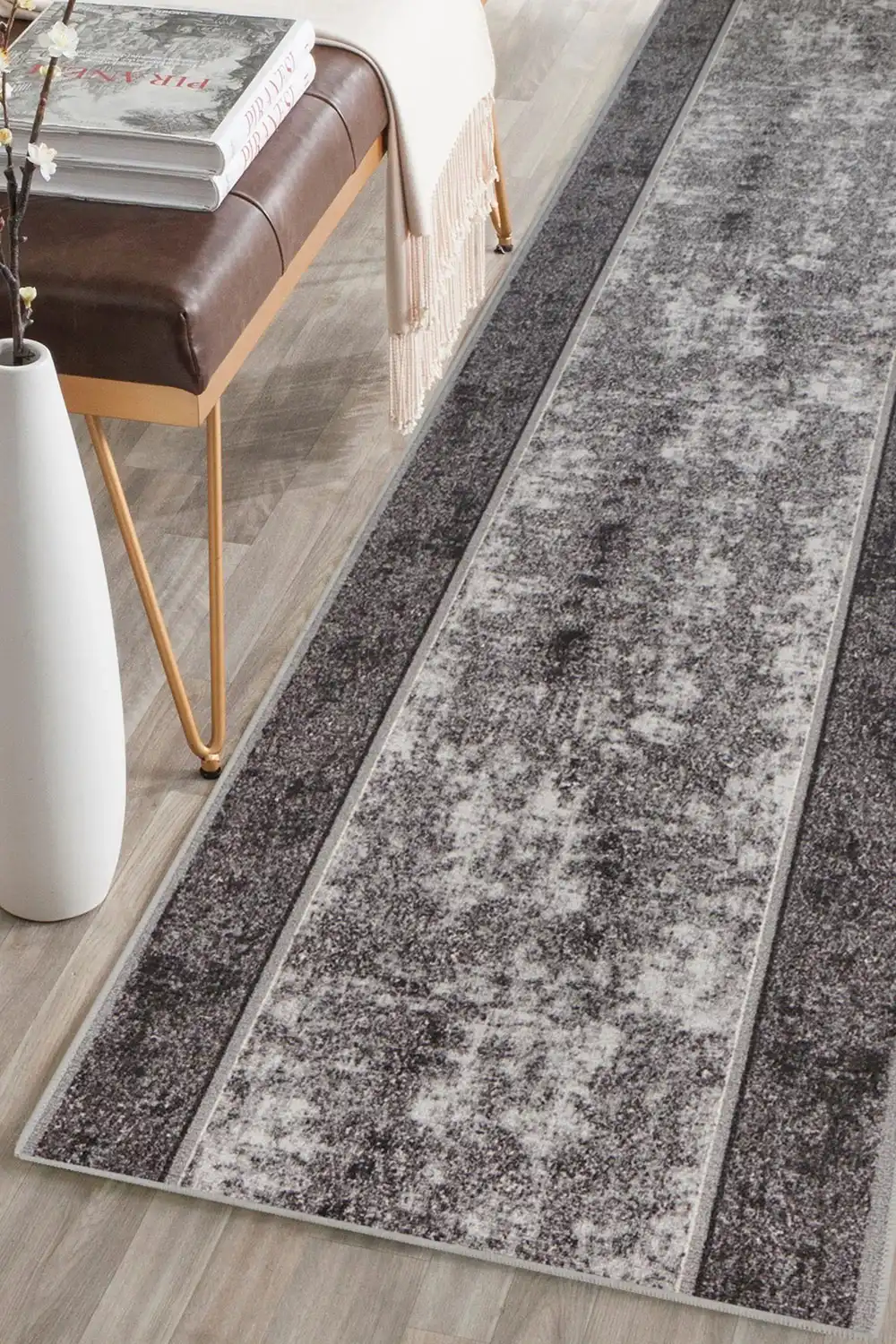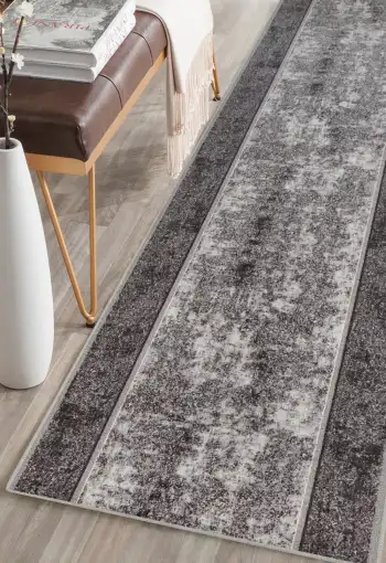Běhoun Stark je polyamidový uzlíkový koberec typu potisk, vyráběný ve dvou elegantních barevných odstínech. Koberec má gelový podklad, který brání klouzání po podlaze. Polyamidová vlákna jsou odolná vůči slunečnímu záření a nečistotám. Zajímavý vzor koberce ozvláštní a zútulní Váš interiér. Běhoun Stark je vhodný do náročnějších bytových prostor jako jsou chodba, schody a pod.