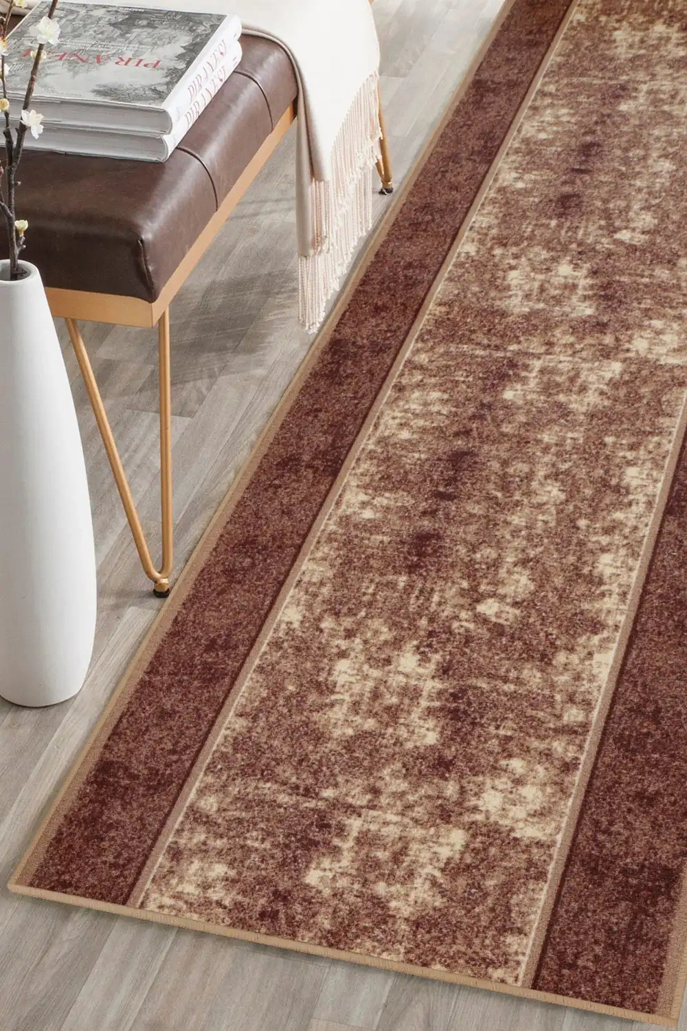 Běhoun Stark je polyamidový uzlíkový koberec typu potisk, vyráběný ve dvou elegantních barevných odstínech. Koberec má gelový podklad, který brání klouzání po podlaze. Polyamidová vlákna jsou odolná vůči slunečnímu záření a nečistotám. Zajímavý vzor koberce ozvláštní a zútulní Váš interiér. Běhoun Stark je vhodný do náročnějších bytových prostor jako jsou chodba, schody a pod.
