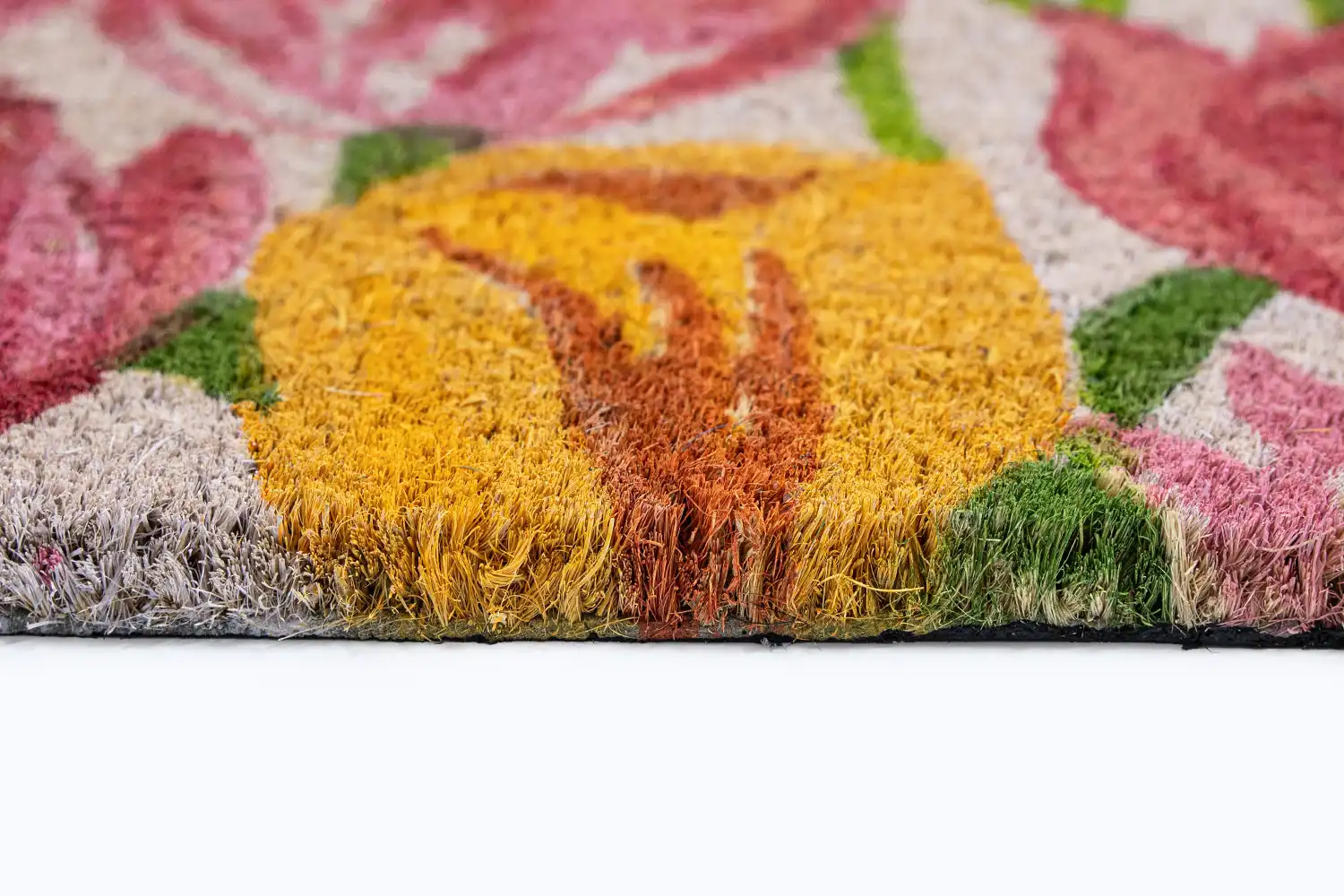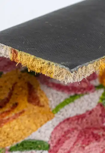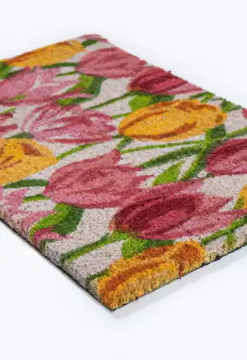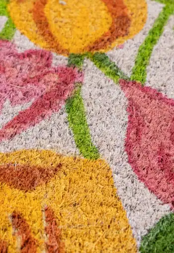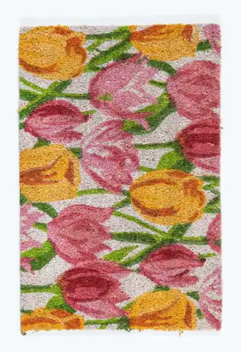 Vstupní rohož Tulipány je vyrobena z přírodního kokosového vlákna s gumovým podkladem. Díky svým zářivým barvám zaujme jistě každého a svým vzorem vykouzlí úsměv. Efektivně čistí obuv a brání dalšímu znečištění podlahy. Díky podkladu z pryže je protiskluzová a také se snadno čistí. Můžete ji využít v interiéru i v exteriéru. Rohožka Tulipány je perfektní, originální a praktickou ozdobou Vašeho vstupu do doby či bytu.