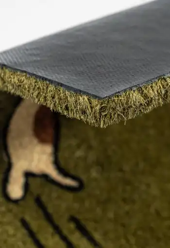 Vstupní rohož Zelený pes je vyrobena z přírodního kokosového vlákna s gumovým podkladem. Díky svým zářivým barvám zaujme jistě každého a svým vzorem vykouzlí úsměv. Efektivně čistí obuv a brání dalšímu znečištění podlahy. Díky podkladu z pryže je protiskluzová a také se snadno čistí. Můžete ji využít v interiéru i v exteriéru. Rohožka Zelený pes je perfektní, originální a praktickou ozdobou Vašeho vstupu do doby či bytu.