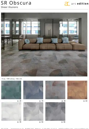 Koberce z kolekce Obscura jsou vyrobeny z kvalitního polyamidového vlákna v různých barevných odstínech s nestárnoucím retro vzorem. Kolekce koberců Obscura vychází z geometrických forem Bauhausu a vrství linie s tvarovými motivy, aby vytvořila vzor, který se pohybuje mezi kruhem a čtvercem. Koberec má podklad ActionBack (tkaná syntetická juta), který je pevný a odolný. Obscura přináší novou interpretaci retro forem a představuje jemnější a přístupnější odkaz na tyto klasické vzory.