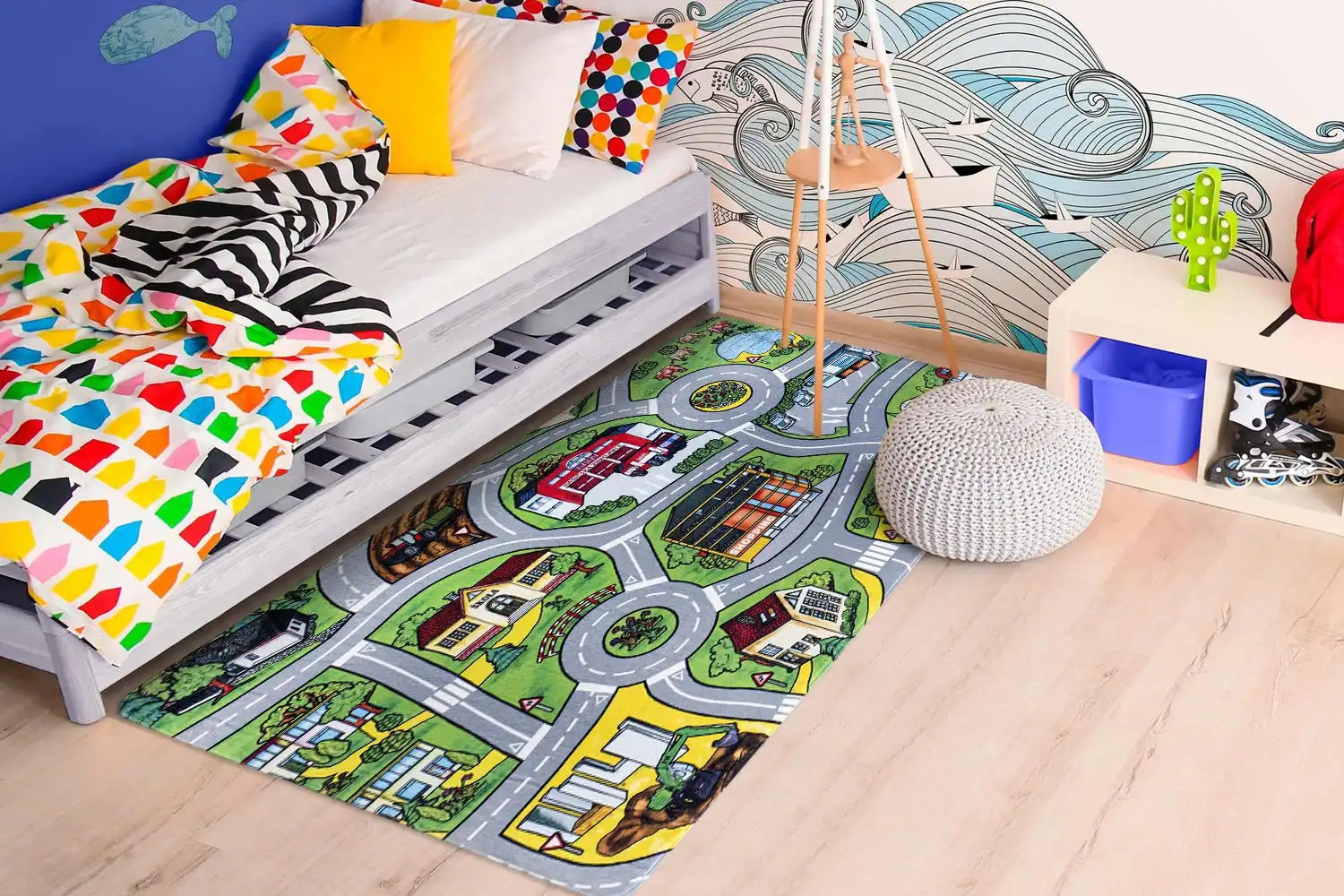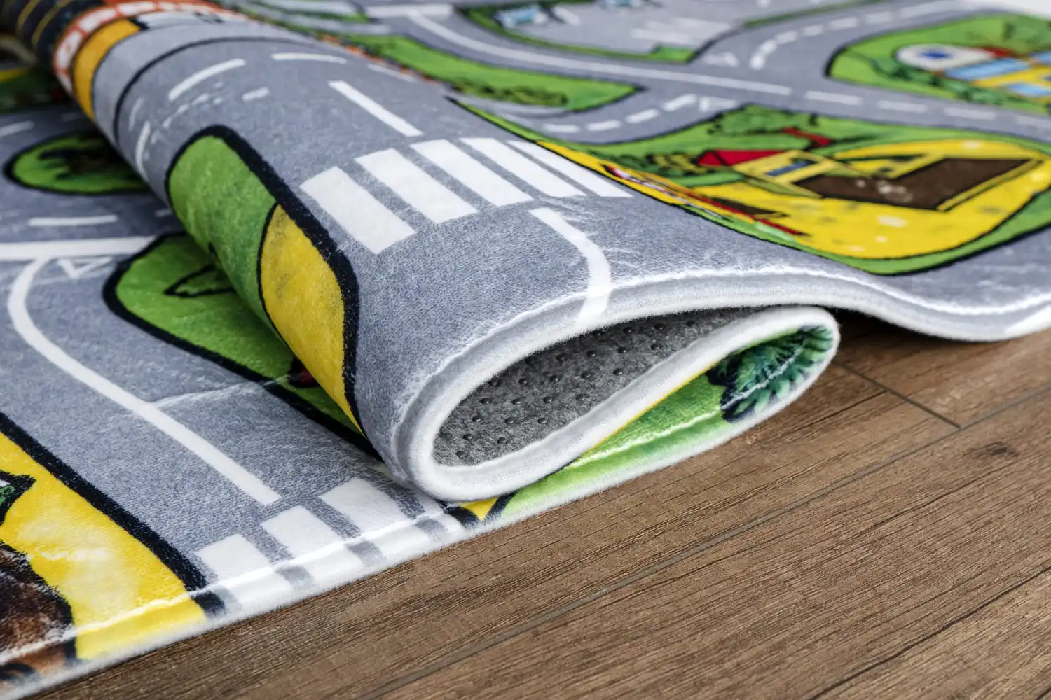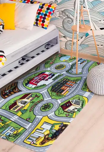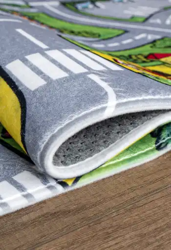 Dětský koberec Cesty je dokonalou volbou pro všechny kluky i holky, se kterým se zlepší všeobecný rozhled a zabaví se s ním na dlouhé chvíle. Povrch koberce je vyroben ze 100% polyesteru, který zajišťuje komfort, pohodlí, příjemný hebký pocit. Koberec má protiskluzovou spodní stranu, která je z hlediska bezpečí velmi důležitá. Koberec je vhodný na hraní si i pro batolata, je měkký, příjemný na dotek, nevypadávají z něj vlákna, má nízký vlas a krásné živé barvy, které dokážou zaujmout každého.