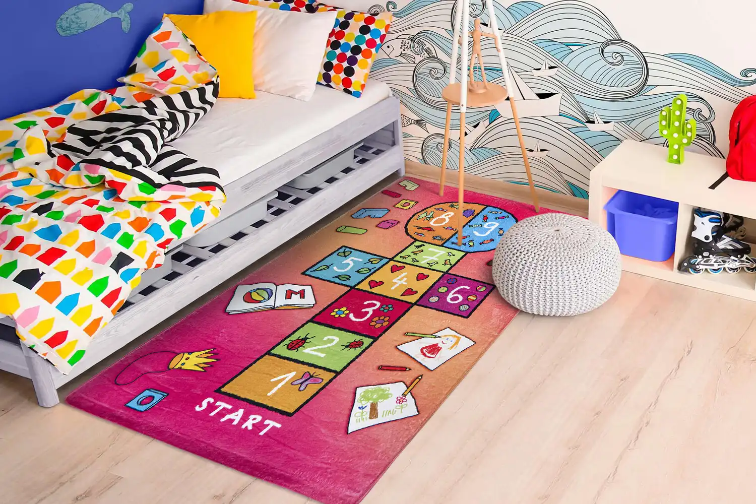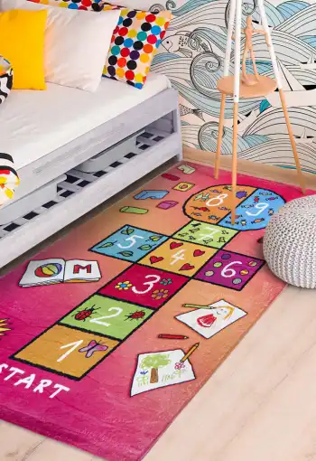 Dětský koberec Školka je dokonalou volbou pro všechny kluky i holky, se kterým se zlepší všeobecný rozhled a zabaví se s ním na dlouhé chvíle. Povrch koberce je vyroben ze 100% polyesteru, který zajišťuje komfort, pohodlí, příjemný hebký pocit. Koberec má protiskluzovou spodní stranu, která je z hlediska bezpečí velmi důležitá. Koberec je vhodný na hraní si i pro batolata, je měkký, příjemný na dotek, nevypadávají z něj vlákna, má nízký vlas a krásné živé barvy, které dokážou zaujmout každého.