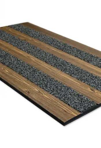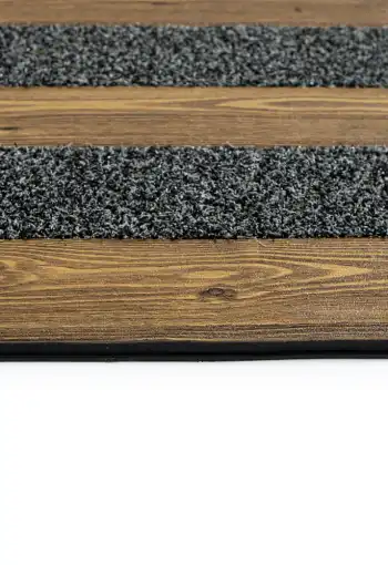 Elegantní rohož Woodland najde své místo a využití zejména v exteriéru. Podklad je protiskluzový, vyrobený z vinylu, čistící pásy jsou vyrobeny z polypropylenu, doplněné vinylovými pásy, které mají vzor dřeva. Rohož Woodland zabraňuje vnášení nečistot z podrážek na botách do bytu či domu.