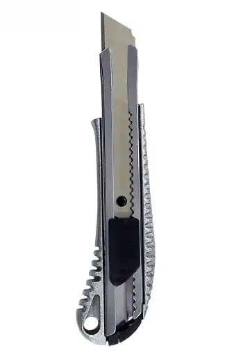 Profesionální celokovový nůž je nedílným nástrojem při řezání koberců nebo jiných materiálů. Je vyroben z kovu a čepel nože je vyrobena z kvalitní oceli. Nůž se v ruce drží velmi pohodlně. Když se čepel otupí, můžete ji odlomit a získáte nové ostří.