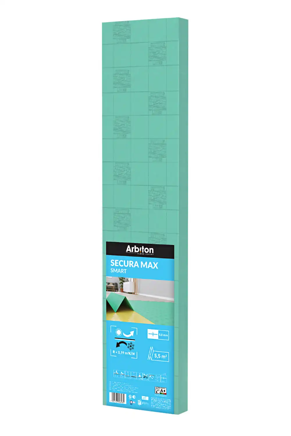 Podložka pod plovoucí podlahu Arbiton Secura Max Smart je vyrobena z extrudovaného polystyrenu ve tvaru harmoniky s dobrou tepelnou izolací a vysokou tlakovou stabilitou. Je odolná vůči vlhku, zatížení se zachováním vlastností a zajišťuje tlumení kročejového a akustického hluku. Tato podložka zaručuje dobrou cirkulaci vzduchu a přilnavost k podkladu. Práce s ní je velmi jednoduchá a rychlá.