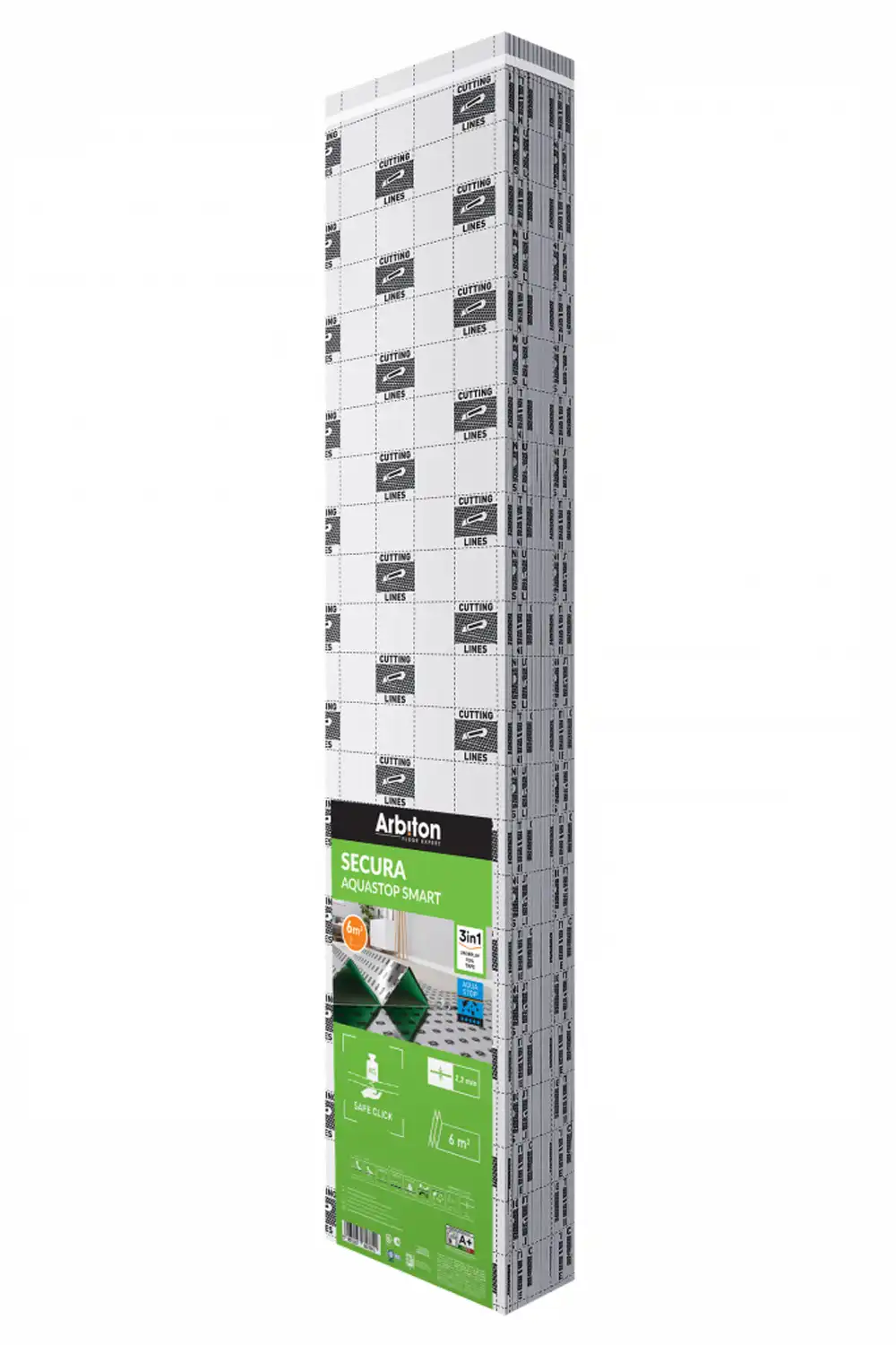 Podložka pod plovoucí podlahu Arbiton Secura Aquastop Smart je vyrobena z extrudovaného polystyrenu s integrovanou parozábranou a spojovací páskou ve tvaru harmoniky. Díky svému tepelnému odporu dokonale izoluje podlahu před chladem a účinně tlumí zvuky vznikající v místnosti. Práce s ní je velmi jednoduchá a rychlá.