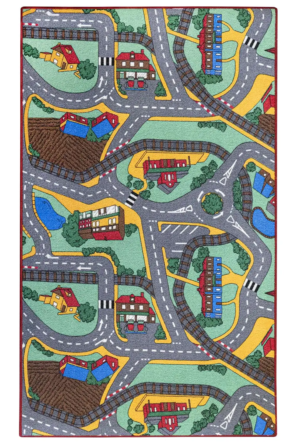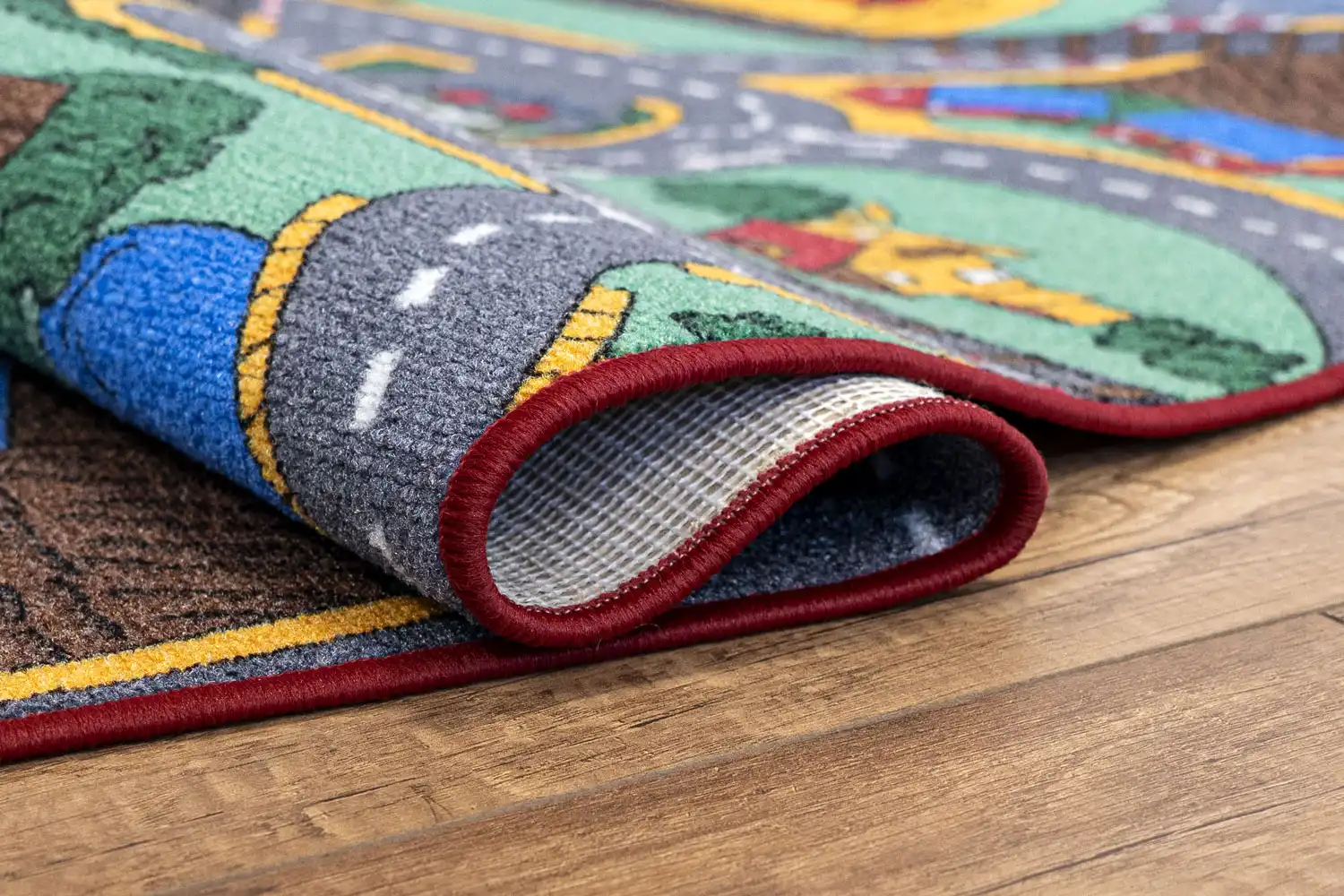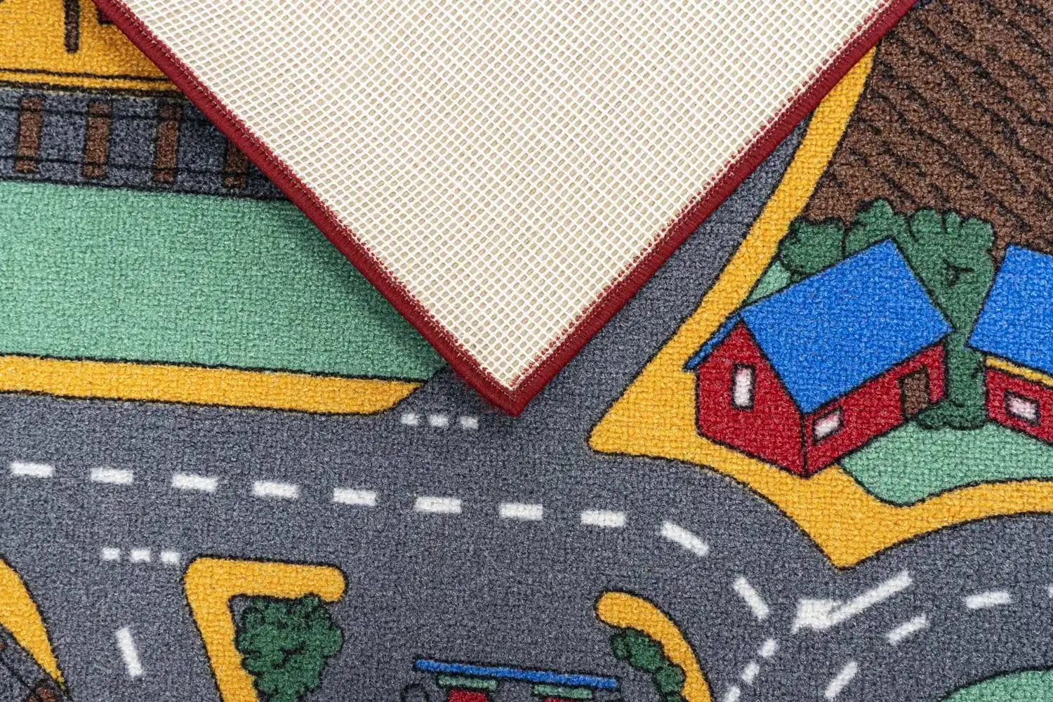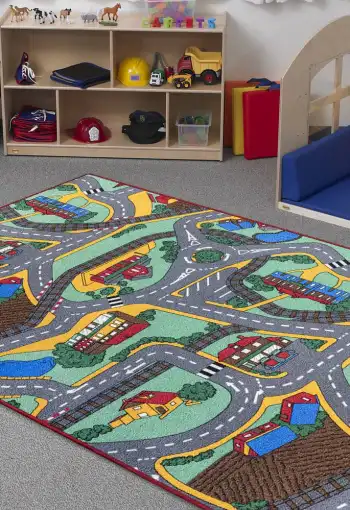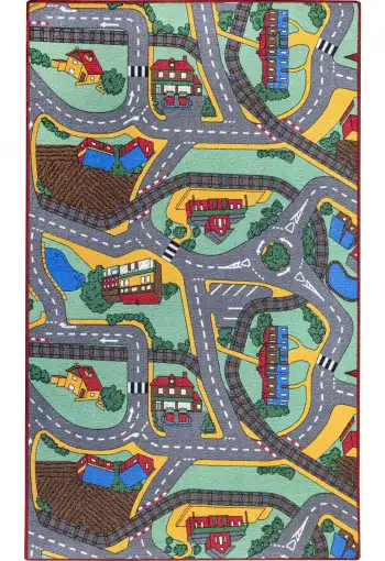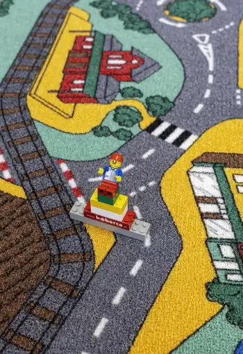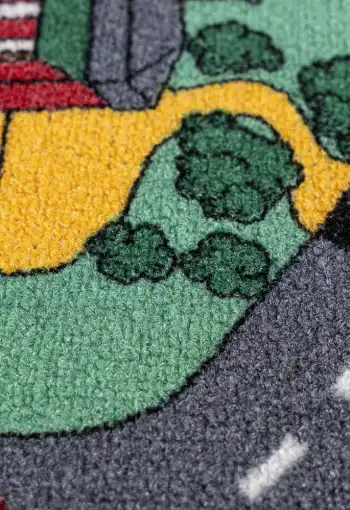 Dětský koberec Playtime je ideální volbou pro všechny kluky i holky s motivem domečků a cest. Tento populární motiv podporuje u dětí fantazii a kreativitu. Stačí pár autíček a Vaše dětičky se zabaví na dlouhé hodiny. Povrch koberce je vyroben ze 100% polyesteru, který zajišťuje komfort a pohodlí. Má protiskluzovou spodní stranu, která je z hlediska bezpečí velmi důležitá. Jako rodiče Vás jistě přesvědčí jeho výhody jako je tlumení kročejového hluku, odolnost vůči oděru a vůči slunečnímu záření.