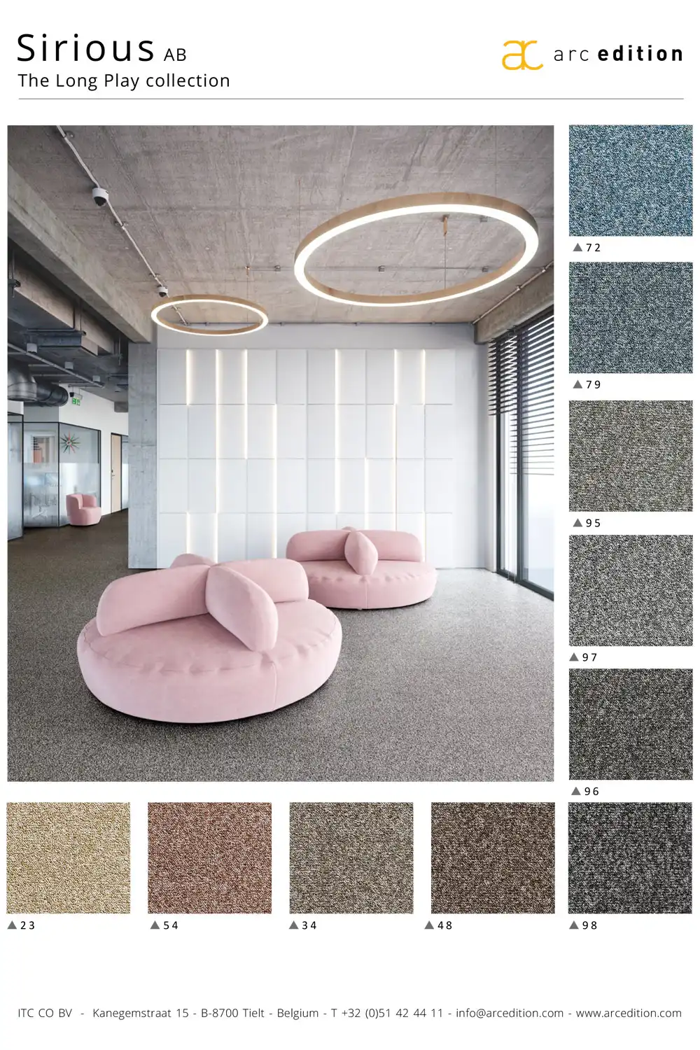 Uzlíkové koberce z kolekce Sirious jsou vyrobeny z kvalitního polyamidového vlákna IMPREL® s podkladem ActionBack (tkaná syntetická juta). Tento koberec má vynikající akustické vlastnosti, je antistatický, odolný vůči kolečkovým židlím, slunečnímu záření a třepení. Decentní barvy s melírem dodají Vašemu interiéru elegantní design. Z široké nabídky barev si jistě každý vybere tu svoji oblíbenou.