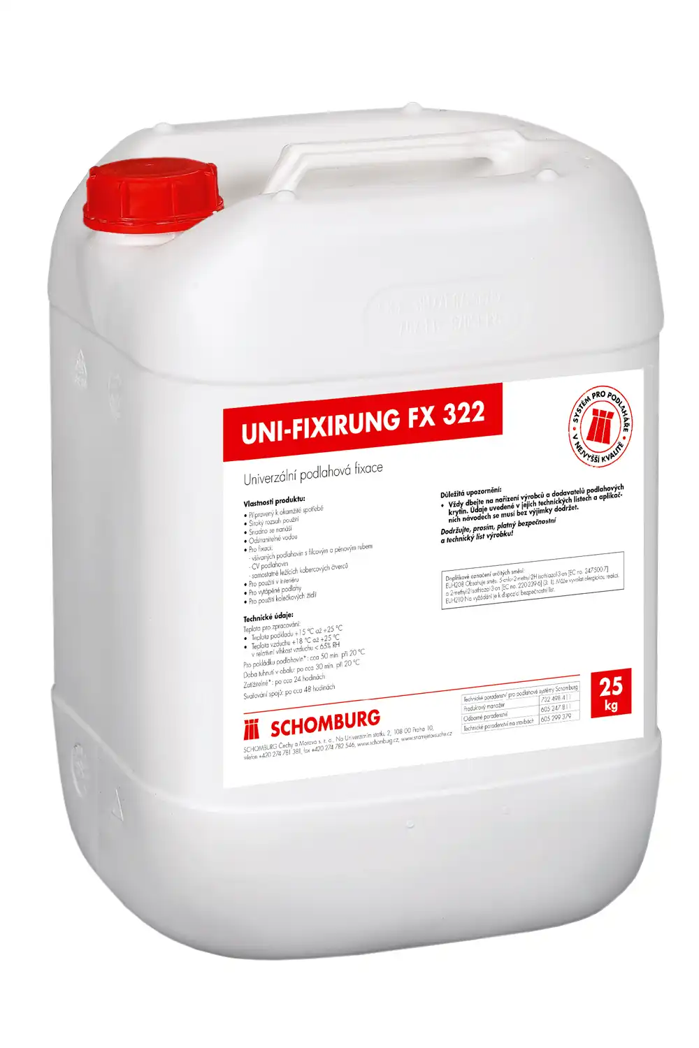 Univerzální podlahová fixace na měkké podlahoviny UNI-FIXIRUNG FX 322 se používá k fixaci vybraných podlahovin, zejména v interiérech, kde se předpokládá opakovaná výměna. Mezi tyto podlahy patří kobercové čtverce, CV podlahoviny, všívané podlahoviny s pěnovým a filcovým rubem. Je vhodná pro použití v interiéru, pro podlahové vytápění a pro použití kolečkových židlí.