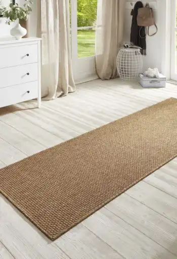 Kusové běhouny BT Carpet Nature od společnosti Hanse Home jsou vyrobeny ze 100% polypropylenového vlákna. Dostupné jsou v přírodních barvách a můžeme je použít jak v interiérech, tak ve venkovních prostorách. Jedná se o běhouny typu bouclé, které poteší také svými skvělými vlastnostmi, mezi které patří snadná údržba, pevnost a antistatická úprava. Běhouny jsou z výroby obšity po celém svém obvodu. Je možné je čistiť, ať už šamponem nebo pěnou na tepování.