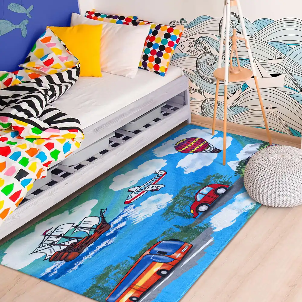 Dětský koberec Kluci je dokonalou volbou pro všechny kluky, se kterým se zlepší všeobecný rozhled a zabaví se s ním na dlouhé chvíle. Povrch koberce je vyroben ze 100% polyesteru, který zajišťuje komfort, pohodlí, příjemný hebký pocit. Koberec má protiskluzovou spodní stranu, která je z hlediska bezpečí velmi důležitá. Koberec je vhodný na hraní si i pro batolata, je měkký, příjemný na dotek, nevypadávají z něj vlákna, má nízký vlas a krásné živé barvy, které dokážou zaujmout každého prcka.