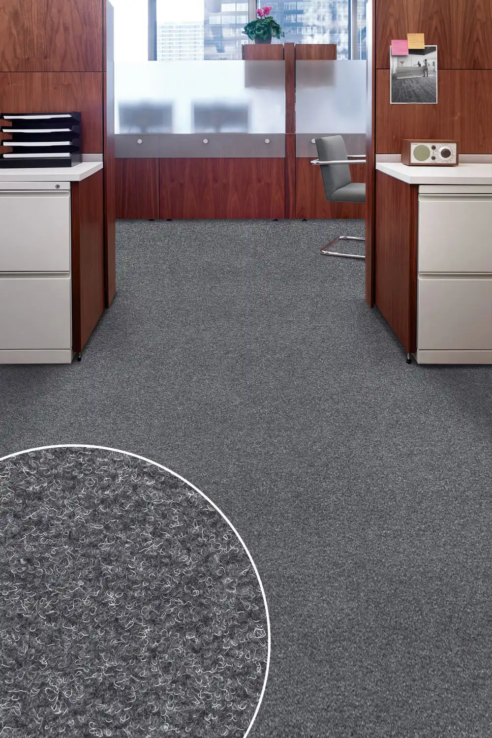 Kancelářský metrážní koberec ZERO je vyráběn technologií vpichování na latexovém nebo gelovém podkladu. Díky jeho povrchu účinně zachycuje drobné nečistoty a špíny, čímž zabraňuje jejich roznášení v místnosti. Koberec má filcový vlas, který je vyroben z kvalitních polypropylenových a polyesterových vláken. Polypropylenová vlákna jsou antistatická, pevná a odolná vůči plísním. Polyesterová vlákna jsou lehká a jemná, proto se používají jako doplňkový materiál pro zvýšení jemnosti koberců. Mezi jeho výhody můžeme zařadit to, že je antistatický, protiskluzový a vhodný do místností s podlahovým vytápěním. Kolekce Zero si své místo najde také v méně namáhaných komerčních prostorách. Koberec s latexovým podkladem doporučujeme v kancelářích s kolečkovými židlemi celoplošně podlepit.