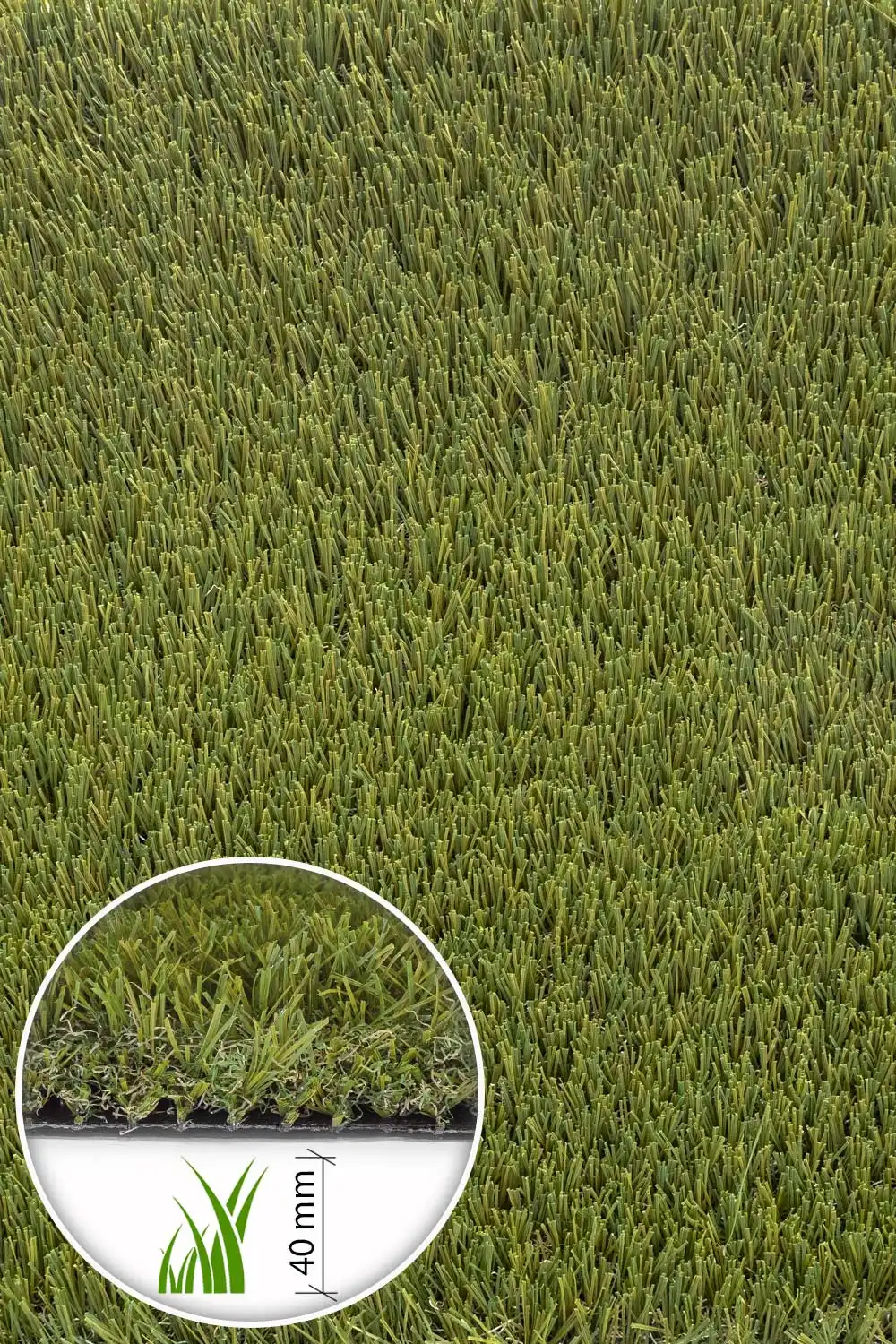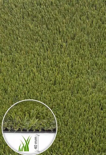 Tento kvalitní umělý trávník s výškou vláken 40 mm nabízí věrný vzhled přírodního trávníku díky kombinaci dvou odstínů zelené a světlého podrostu připomínajícího suchou trávu. Výsledkem je přirozený a esteticky přitažlivý povrch, který oživí každý balkon, terasu či zahradu.