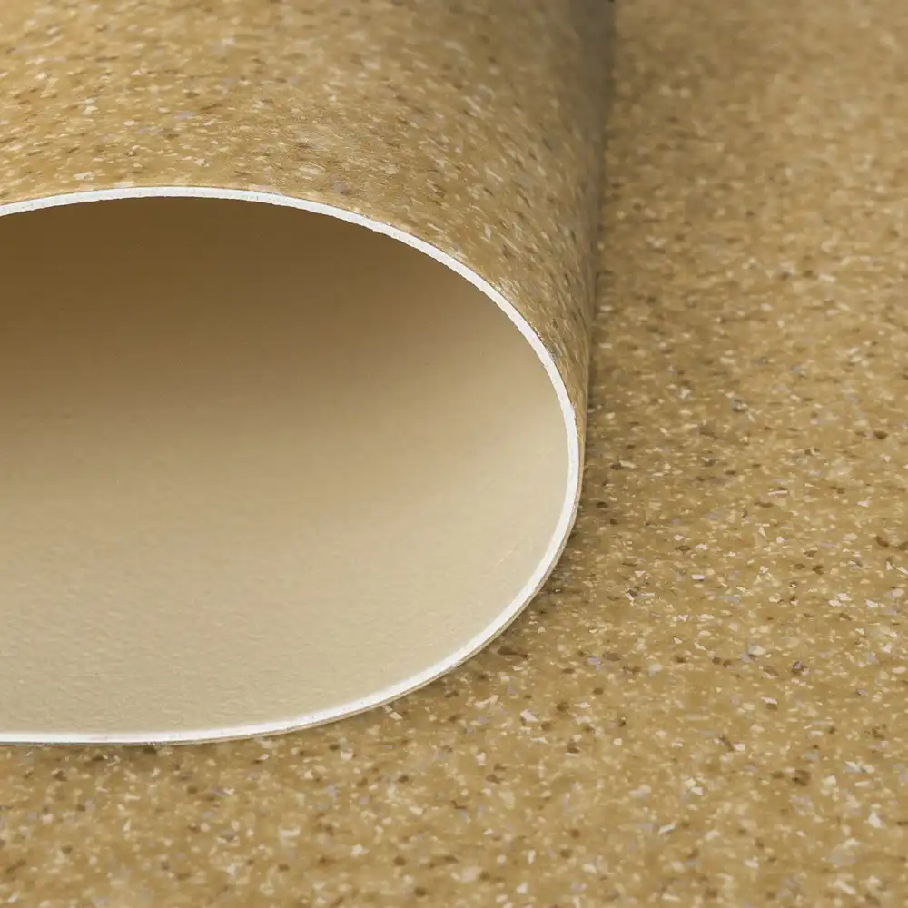 S třídou zátěže 34-42 je připravena na pořádnou provozní zátěž v komerčních i průmyslových prostorách, kde se to hemží pohybem a aktivitou od rána do večera. Má tloušťku 2 mm, takže se jen tak nepoddá, a nášlapná vrstva 0,7 mm odolá škrábancům, mechanickým útokům i jiným podlahovým katastrofám. Její tzv. chipsový (prskaný vzor) přinese do prostoru stylový šmrnc, který sedne do domácností i kanceláří či dílen, kde vznikají velké věci. Navíc účinně tlumí kročejový i akustický hluk, takže Vás nebude rušit klepání podpatků ani pracovní shon. Údržba? Hračkou! Stačí běžné čištění a podlaha se tváří, že se na ní nikdy nic nestalo. S hmotností 2,05 kg/m² je stabilní, hořlavostí Bfl-s1 se řadí mezi bezpečné volby a protiskluzový povrch s třídou R10 snižuje riziko neplánovaných tanečních kreací. Povrchová úprava PUR Hyperguard+ ještě přidává bonusovou ochranu.