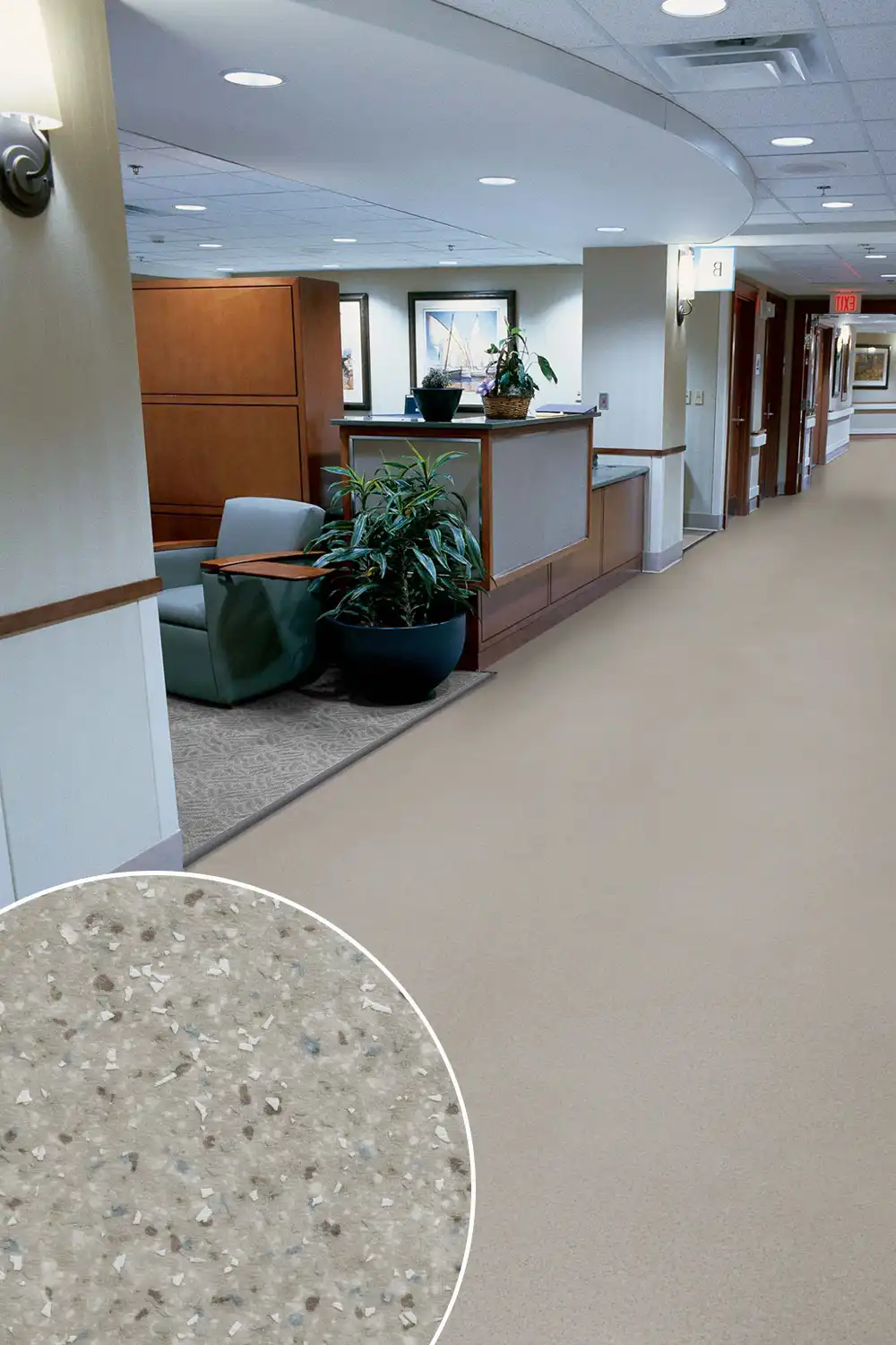 S třídou zátěže 34-42 je připravena na pořádnou provozní zátěž v komerčních i průmyslových prostorách, kde se to hemží pohybem a aktivitou od rána do večera. Má tloušťku 2 mm, takže se jen tak nepoddá, a nášlapná vrstva 0,7 mm odolá škrábancům, mechanickým útokům i jiným podlahovým katastrofám. Její tzv. chipsový (prskaný vzor) přinese do prostoru stylový šmrnc, který sedne do domácností i kanceláří či dílen, kde vznikají velké věci. Navíc účinně tlumí kročejový i akustický hluk, takže Vás nebude rušit klepání podpatků ani pracovní shon. Údržba? Hračkou! Stačí běžné čištění a podlaha se tváří, že se na ní nikdy nic nestalo. S hmotností 2,05 kg/m² je stabilní, hořlavostí Bfl-s1 se řadí mezi bezpečné volby a protiskluzový povrch s třídou R10 snižuje riziko neplánovaných tanečních kreací. Povrchová úprava PUR Hyperguard+ ještě přidává bonusovou ochranu.