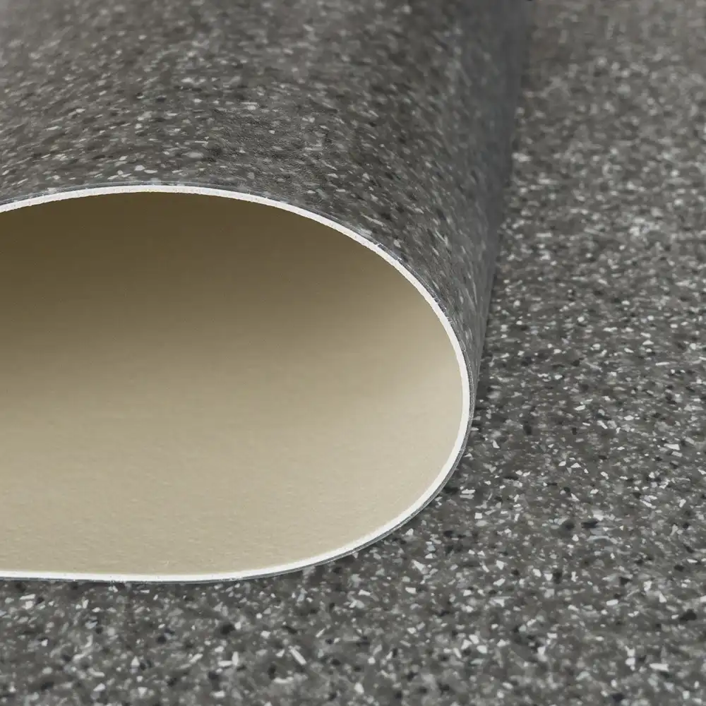 S třídou zátěže 34-42 je připravena na pořádnou provozní zátěž v komerčních i průmyslových prostorách, kde se to hemží pohybem a aktivitou od rána do večera. Má tloušťku 2 mm, takže se jen tak nepoddá, a nášlapná vrstva 0,7 mm odolá škrábancům, mechanickým útokům i jiným podlahovým katastrofám. Její tzv. chipsový (prskaný vzor) přinese do prostoru stylový šmrnc, který sedne do domácností i kanceláří či dílen, kde vznikají velké věci. Navíc účinně tlumí kročejový i akustický hluk, takže Vás nebude rušit klepání podpatků ani pracovní shon. Údržba? Hračkou! Stačí běžné čištění a podlaha se tváří, že se na ní nikdy nic nestalo. S hmotností 2,05 kg/m² je stabilní, hořlavostí Bfl-s1 se řadí mezi bezpečné volby a protiskluzový povrch s třídou R10 snižuje riziko neplánovaných tanečních kreací. Povrchová úprava PUR Hyperguard+ ještě přidává bonusovou ochranu.