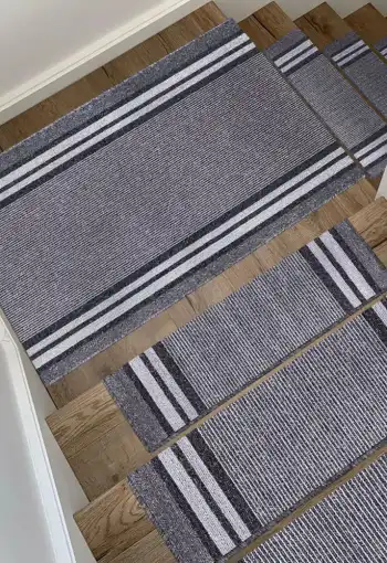 Schodové nášlapy Gandia – stylové kousky v odstínech šedé či béžové, které svým pruhovaným designem spojují moderní vzhled s praktickou funkčností.