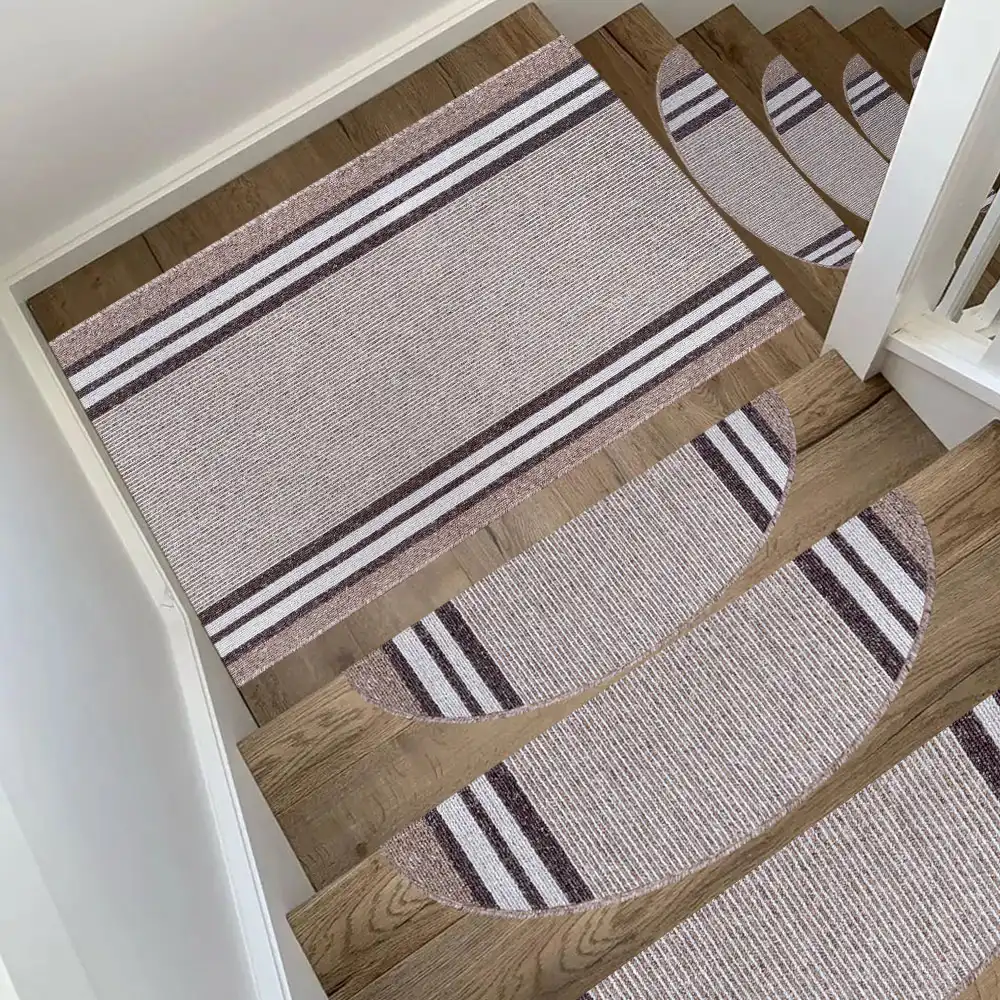 Schodové nášlapy Gandia – stylové kousky v odstínech šedé či béžové, které svým pruhovaným designem spojují moderní vzhled s praktickou funkčností.