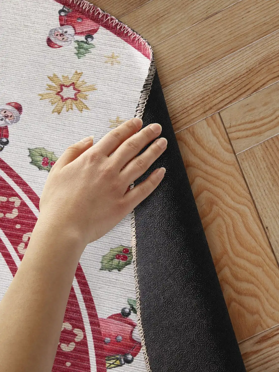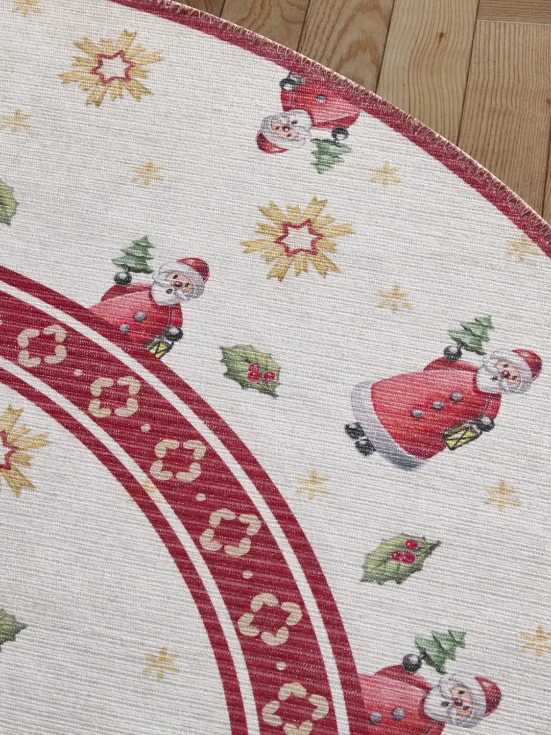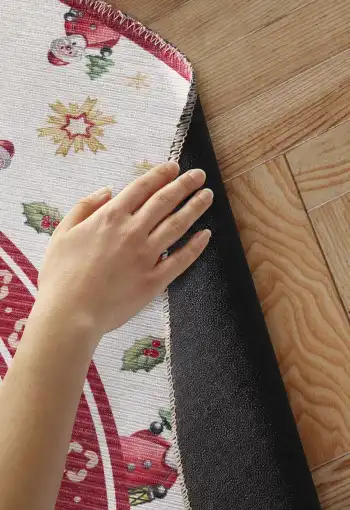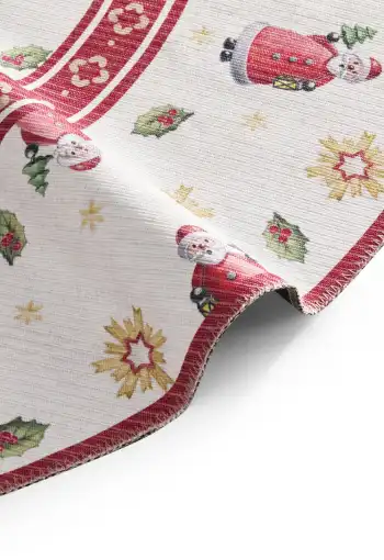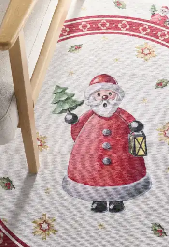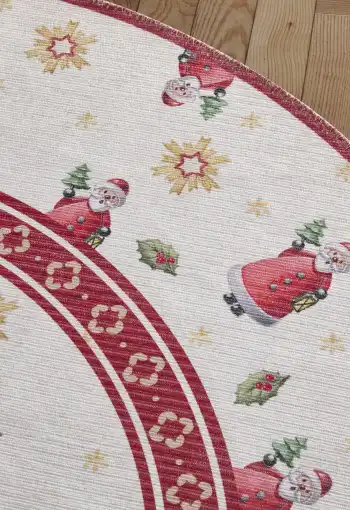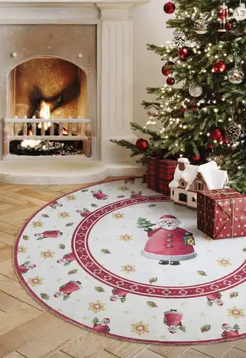 Bezvlasé kruhové kusové koberce Villeroy & Boch Toy´s Delight z limitované edice vyčarují útulnou vánoční atmosféru pod každým vánočním stromečkem. Jsou vyrobeny z 100 % polyesteru a jejich povrch netvoří klasický vlas, ale potisk. Díky tomuto materiálu jsou tyto vánoční koberce příjemné na dotek a snadno se čistí Přinášejí hravé motivy a vysoce kvalitní zpracování. Na spodní straně mají protiskluzovou úpravu, která zajišťuje, že lépe drží na svém místě. Koberce mají certifikát OEKO-TEX Standard 100, který zaručuje ekologicky šetrný výrobní proces a absenci škodlivých látek.