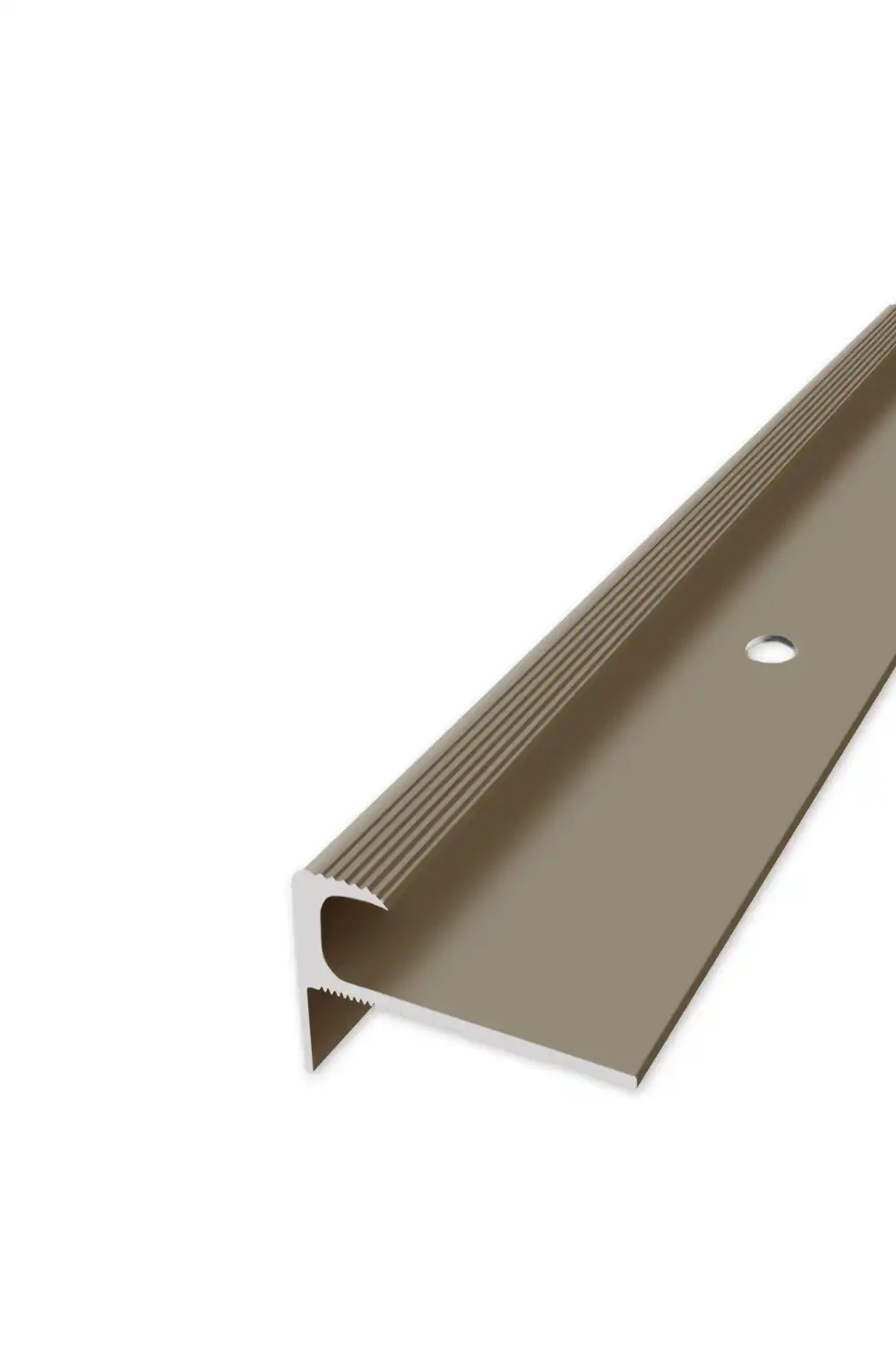 Ukončovací schodový profil je určen pro ukončení pvc podlahy nebo koberce a ochranu hran schodů. Má předvrtané otvory pro zapuštěné šrouby. V nabídce v délce 250 cm.