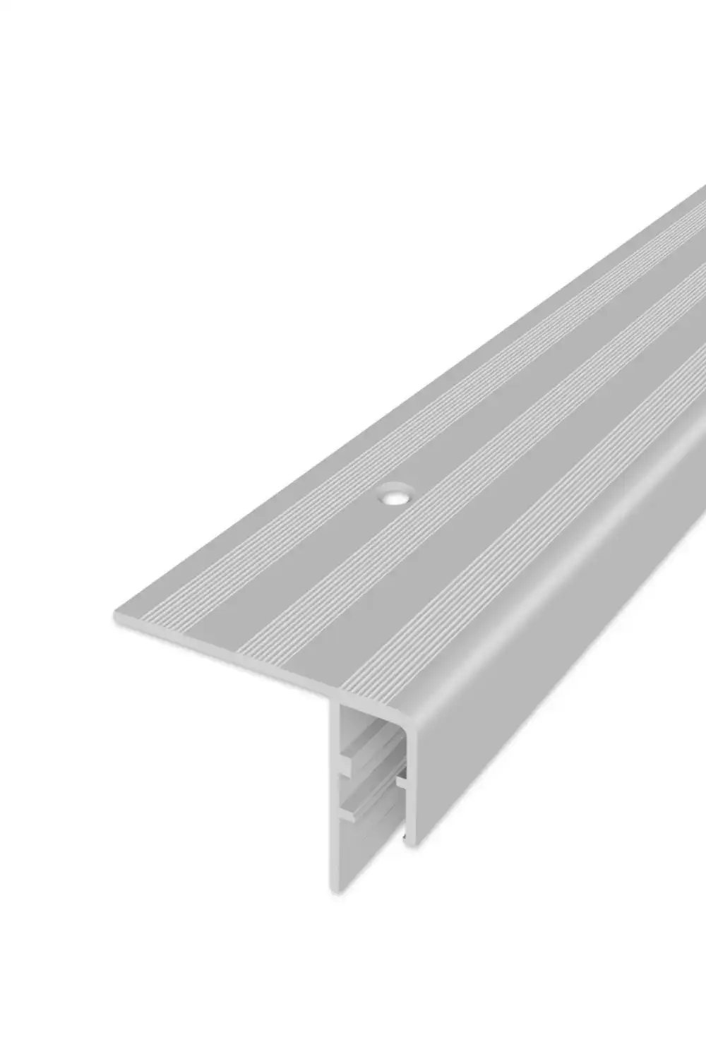 Schodový profil pro LED osvětlení s předvrtanými otvory na zapuštěné šrouby je určen k osvětlení hran schodů pomocí světelného kabelu. Představuje praktické řešení pro zvýšení bezpečnosti a lepší orientaci na schodištích, zejména v prostorách se sníženou viditelností. Profil je vhodný do interiérů jako jsou kina, restaurace, noční podniky, hotely či další komerční prostory, kde pomáhá zvýraznit schodové hrany a zároveň vytváří moderní světelný efekt. Hliníkový profil je odolný, pevný a zajišťuje dlouhou životnost i při častém používání. Předvrtané otvory umožňují snadnou montáž pomocí zapuštěných šroubů, díky čemuž je profil stabilně uchycen a zároveň působí esteticky. Produkt je dostupný ve čtyřech barevných provedeních eloxovaného hliníku.