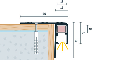 - umožňuje efektivní osvětlení hran schodů pomocí LED světelného kabelu