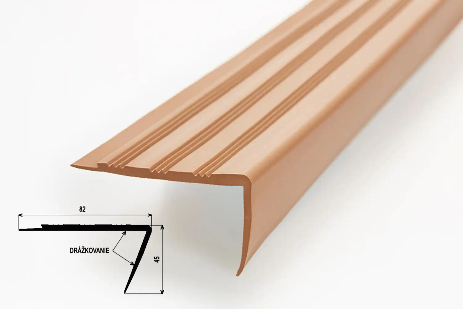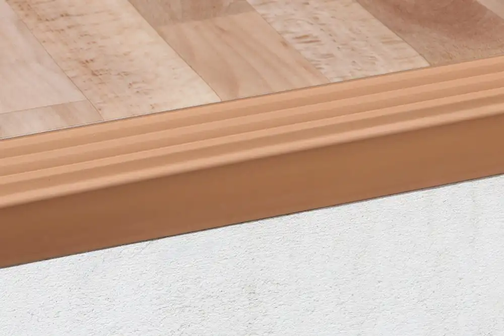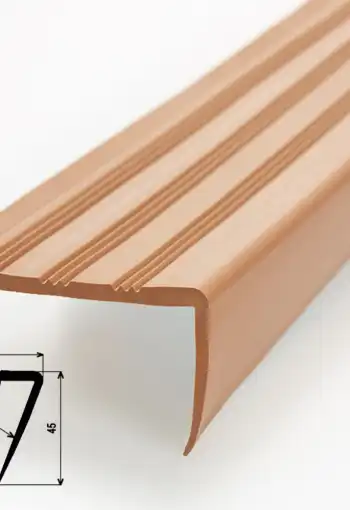 Schodová hrana z pružného plastu s profilovanou nášlapnou plochou. Hrana je určena pro interiérové schodiště jako doplněk podlahových krytin. Umožňuje dokonalé napojení podlahoviny v detailu. Hrany se k povrchu lepí, pro aplikace jsou nejvhodnější betonové schody, které musí být rovné, pevné, bez trhlin a čisté.