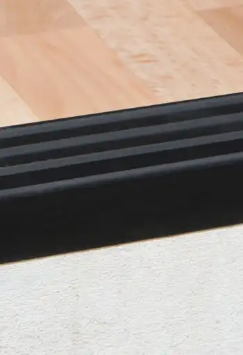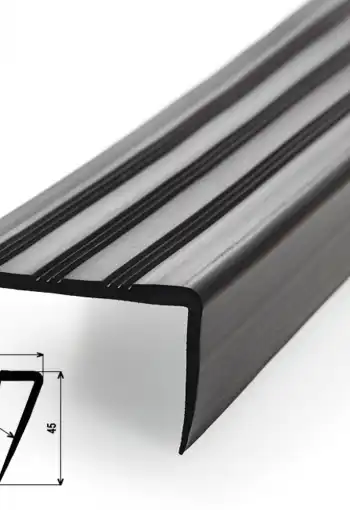 Schodová hrana z pružného plastu s profilovanou nášlapnou plochou. Hrana je určena pro interiérové schodiště jako doplněk podlahových krytin. Umožňuje dokonalé napojení podlahoviny v detailu. Hrany se k povrchu lepí, pro aplikace jsou nejvhodnější betonové schody, které musí být rovné, pevné, bez trhlin a čisté.