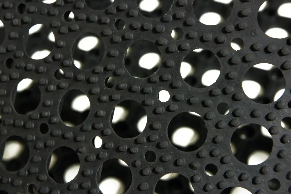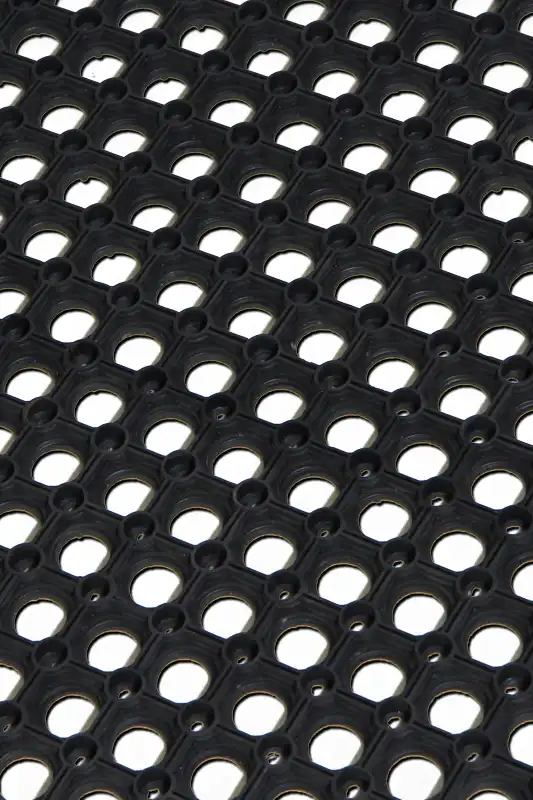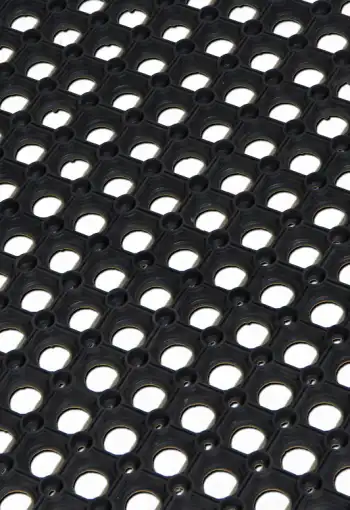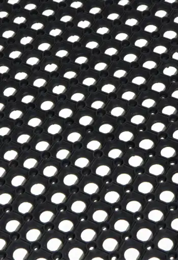 Vchodová vnější rohož RUBERING v různých rozměrech a výšce 22 mm. Extrémně houževnatá gumová rohožka vyznačující se dlouhou životností v náročných vnějších podmínkách. Otvory umožňují přepadení špíny, sněhu, bláta nebo kamínků přes rohožku, tudíž je obzvláště vhodná pro mokré, ledové nebo sněhové prostředí. Na spodní straně je rohož odsazena od povrchu, což umožňuje snadný odvod vody. Rohožka vyhovuje protiskluzové normě EN 13552 kategorie R10.