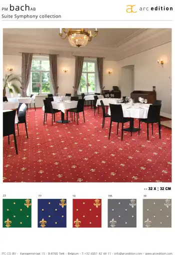 Metrážní koberce PM Bach jsou vyrobeny ze 100% polyamidového vlákna IMPREL®, čímž se zajišťuje jeho trvanlivost, pevnost a odolnost. Koberec má střižený vlas typu saxony, čímž nabývá luxusní strukturu a rovnoměrnost vlasu. Podklad ActionBack (tkaná syntetická juta) zajišťuje jeho pevnost a odolnost. Položte základy pro majestátní prostředí s tímto královským vzorem. Elegance této kolekce přidává luxusní vzhled v jakékoli místnosti. Představte královskou vznešenost ve Vašich komnatách. Jeho jemný, ale pevný povrch je ideální pro použití v hotelech, pracovnách a jiných reprezentativních místnostech.