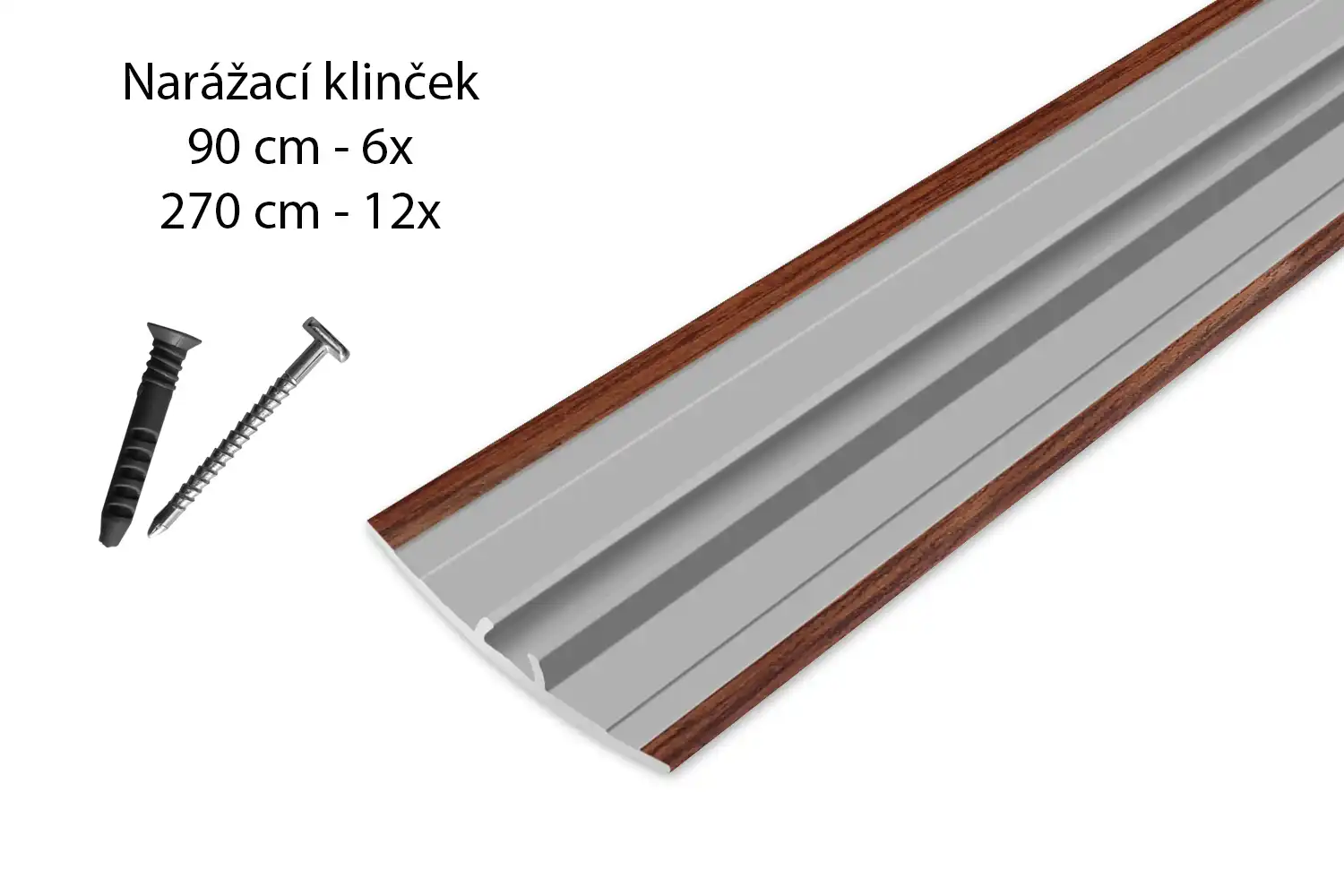 Narážecí přechodová lišta určená k ukončení a plynulé propojení podlahových ploch s výškovým rozdílem 0-10 mm. Lišta se o podlahu uchycuje pomocí šroubů, čímž vznikne pevný a trvalý spoj. Vyznačuje se tzv. "neviditelnou montáží". Sada obsahuje upevňovací šrouby a hmoždinky. Dostupná v délkách 270 cm / 90 cm a ve více barevných provedeních.