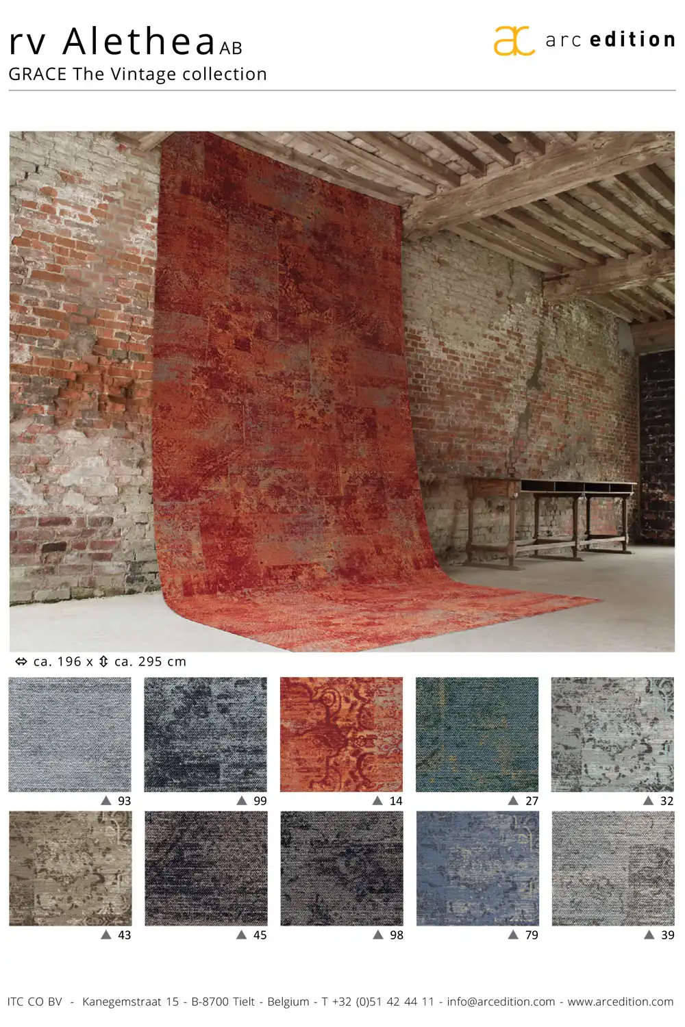 Uzlíkový koberec RV ALETHEA z kolekce Grace the Vintage je vyroben z polyamidových vláken Imprel®, která jsou pružná, trvanlivá a odolná vůči oděru a nečistotám. Podklad koberce ActionBack jej činí trvanlivějším, odolnějším a pevnějším. RV Alethea je Živá mozaika bohatých a složitých vzorů arabesky rozbitých ubývajícím časem. Tato kolekce je vhodná do hotelů, veřejných institucí, kanceláří. Nadčasový design této kolekce s noblesními vzory zaujme svojí vyjímečností. Dostupné v zajímavých barevných kombinacích.