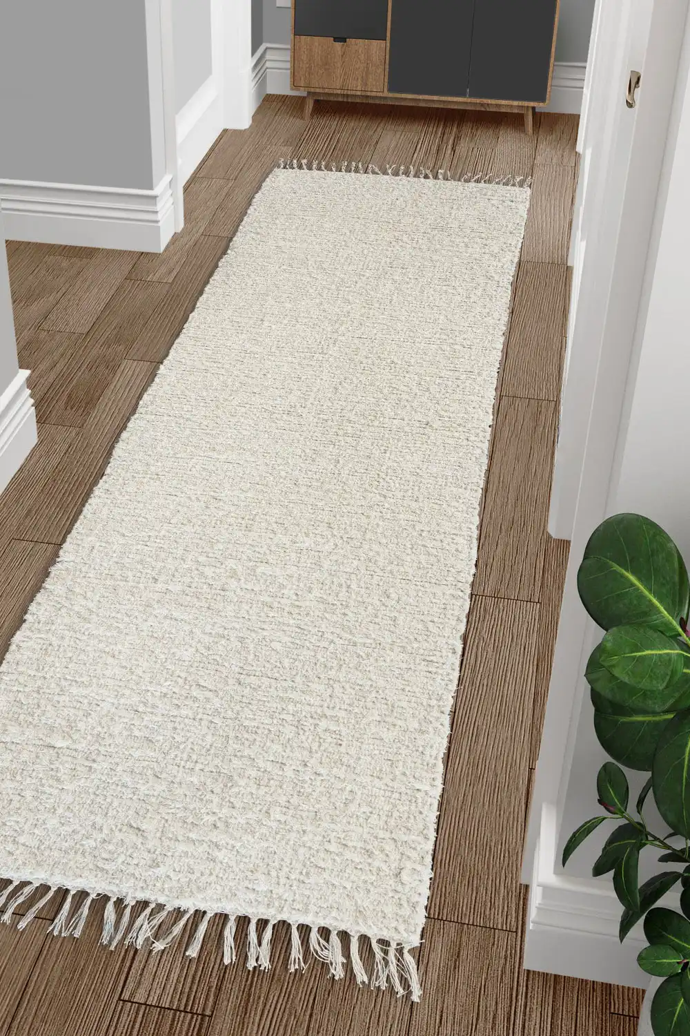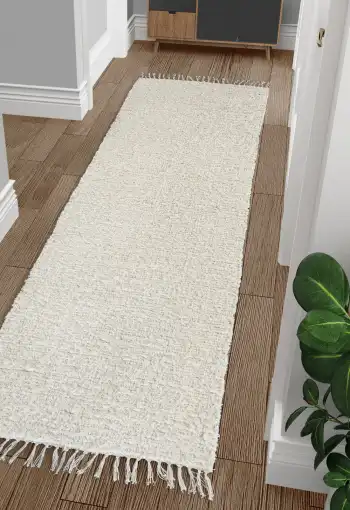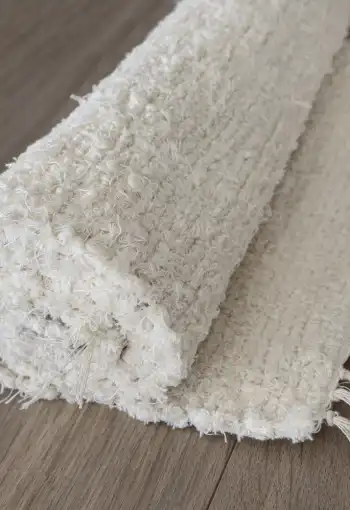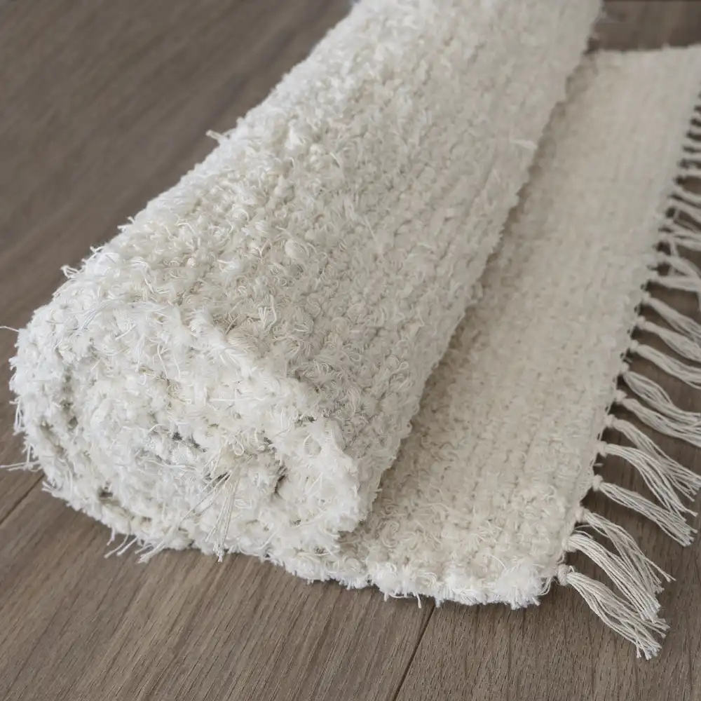 Díky texturované struktuře a třásním na okrajích působí koberec hmatově i vizuálně zajímavě. Navíc vytváří příjemný pocit tepla a pohodlí pod nohama, zvláště pokud se klade na dřevěnou nebo dlažební podlahu.