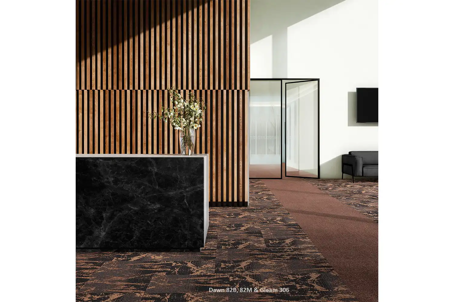 Šmyčkové kobercové čtverce Dawn snesou vyšší zátěž, a proto jsou vhodné do prostor, jako jsou zasedací místnosti, kancelářské prostory a pod. Díky vláknu ECONYL jsou tyto čtverce šetrné k životnímu prostředí. Tato vlákna jsou vyrobena z regenerovaného nylonu z rybářských sítí a podobných nalezených výrobků. Položené čtverce působí v prostoru mramorovým dojmem, který zvýrazní váš interiér.