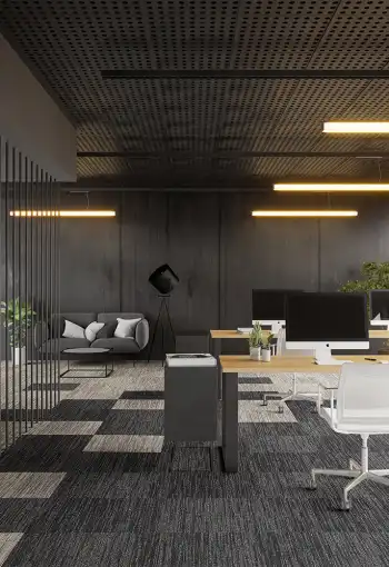 Gradient kobercových čtverců First Decode zpestří obchodní prostory. Polyamidová vlákna zaručují vyšší míru zátěže čímž jsou vhodná do kanceláří, zasedaček ale i do bytových prostor. Čtverce není třeba celoplošně lepit disperzním lepidlem, kobercové čtverce se mohou podlepit trvale pružným, fixačním lepidlem nebo oboustrannou lepicí páskou.