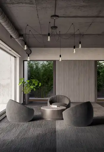 Gradient kobercových čtverců First Decode zpestří obchodní prostory. Polyamidová vlákna zaručují vyšší míru zátěže čímž jsou vhodná do kanceláří, zasedaček ale i do bytových prostor. Čtverce není třeba celoplošně lepit disperzním lepidlem, kobercové čtverce se mohou podlepit trvale pružným, fixačním lepidlem nebo oboustrannou lepicí páskou.