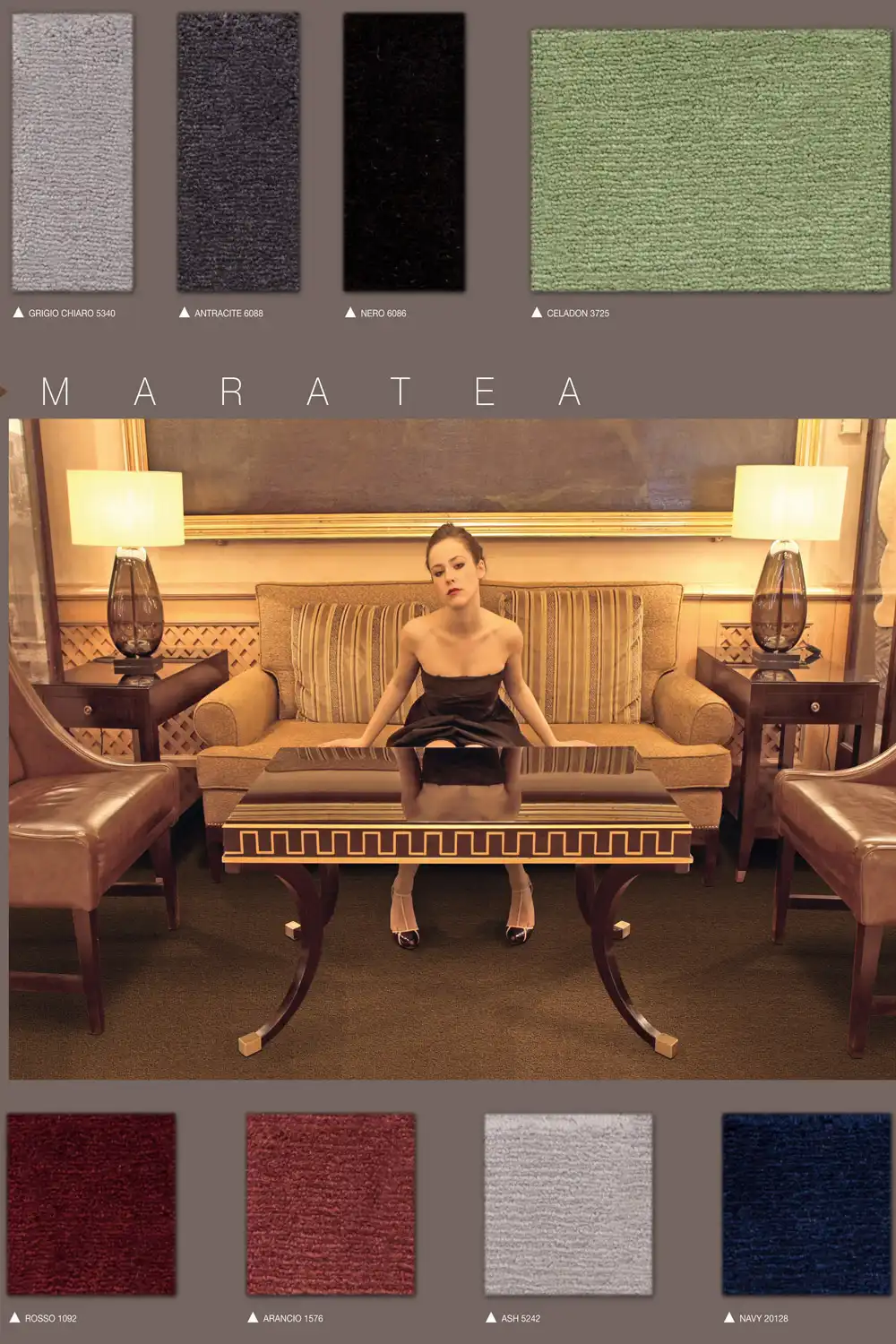 Reprezentativní koberec MARATEA je vyroben ze 100% vlny, díky čemuž je trvanlivý a příjemný na dotek. Tento elegantní koberec je k dispozici v široké škále klasických a moderních odstínů. Koberec má díky použití příze vlny antistatické, zvukové a tepelně izolační vlastnosti. Vyznačuje se také velmi vysokou hustotou vlákna, kterou lze nalézt pouze u nejlepších vlněných koberců. Zaujme nejen svým jednoduchým, ale zároveň i luxusním designem.