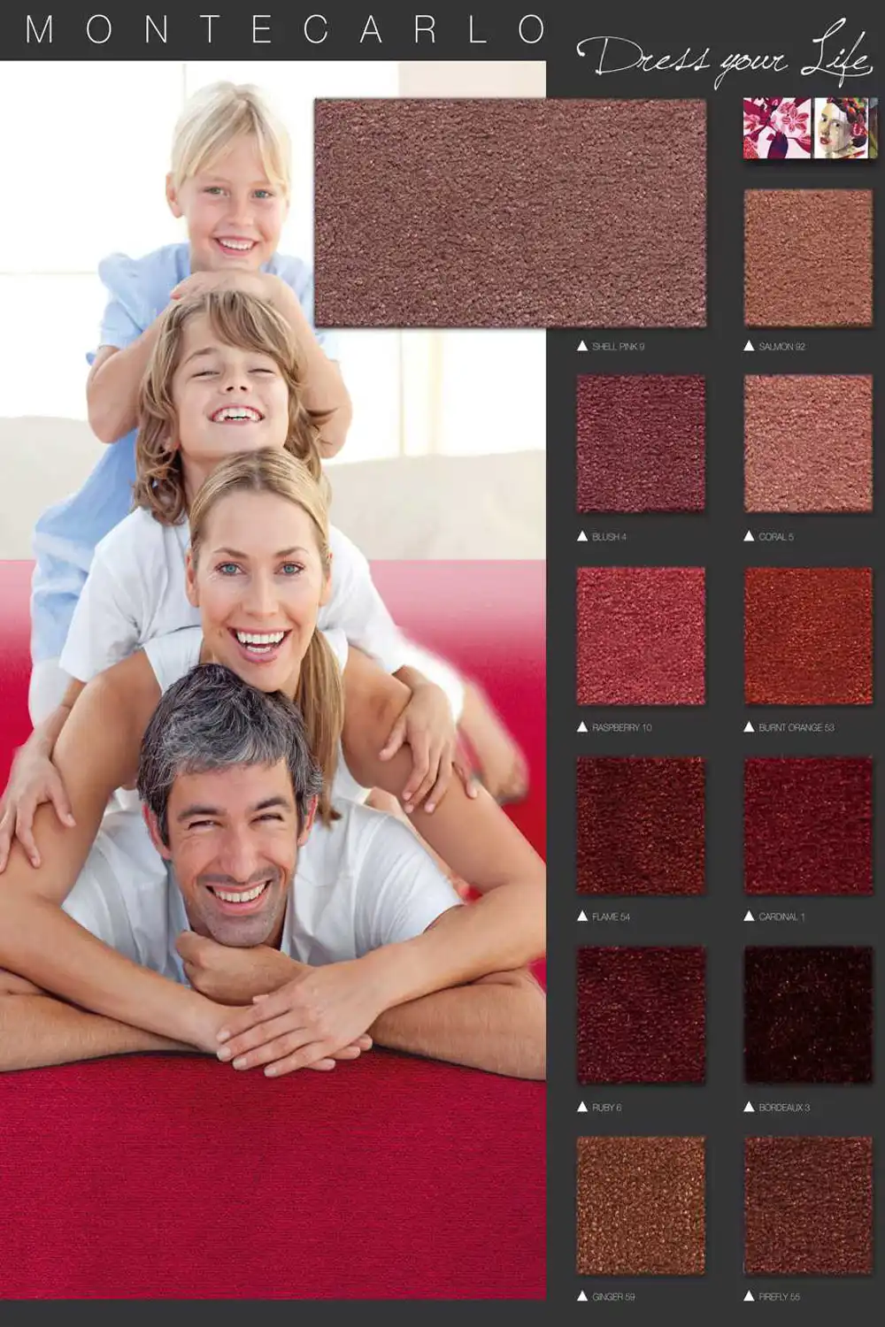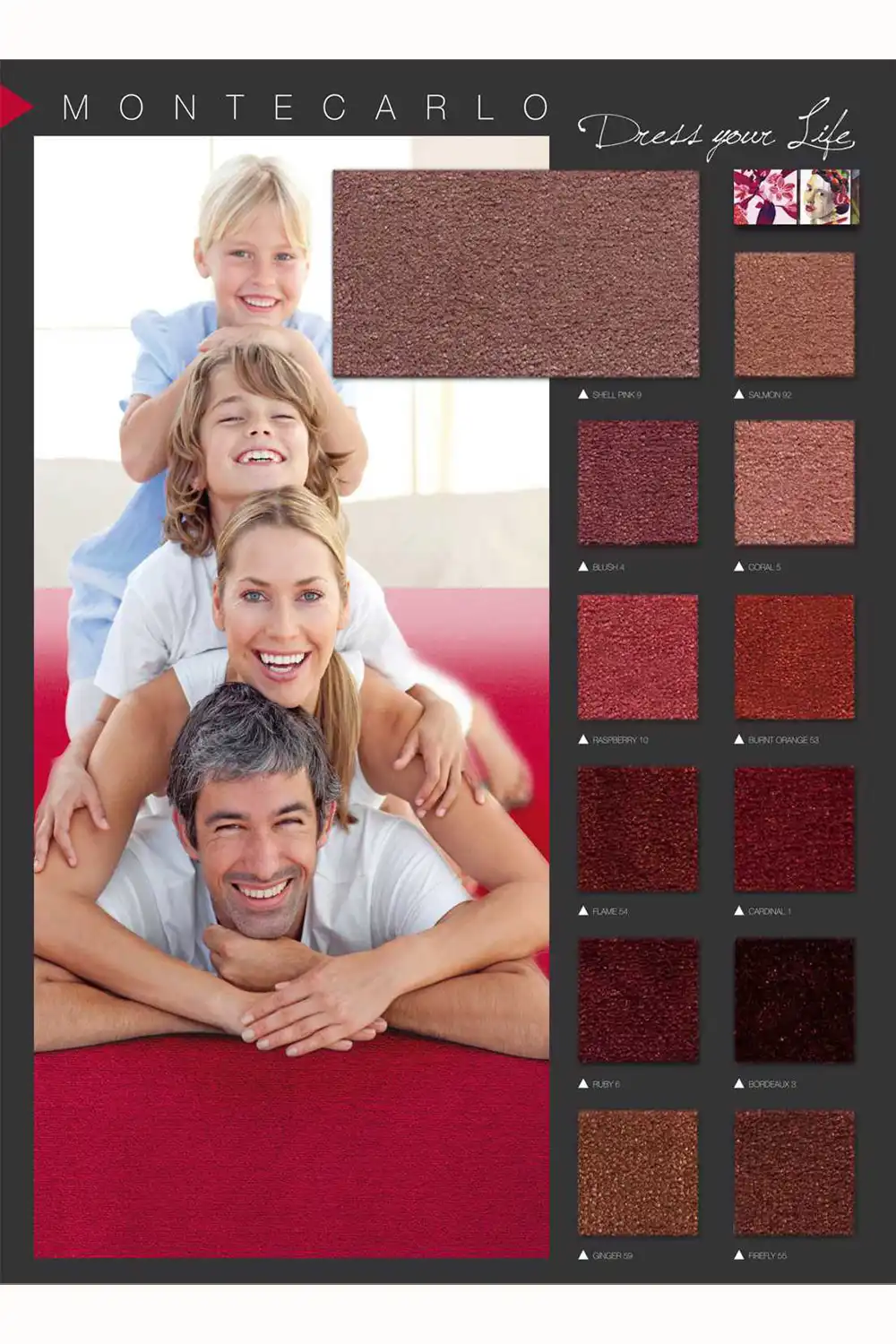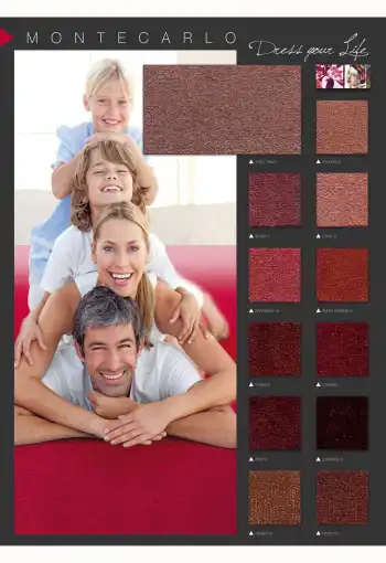 Reprezentativní koberec MONTECARLO je vyroben ze 90% vlny a 10% polyesteru, díky čemuž je trvanlivý a příjemný na dotek. Tento elegantní koberec je k dispozici v široké škále klasických a moderních odstínů. Koberec má díky použití příze vlny antistatické, zvukové a tepelněizolační vlastnosti. Vyznačuje se také velmi vysokou hustotou vlákna, kterou lze nalézt pouze u nejlepších vlněných koberců. Zaujme nejen svým jednoduchým, ale zároveň i luxusním designem.