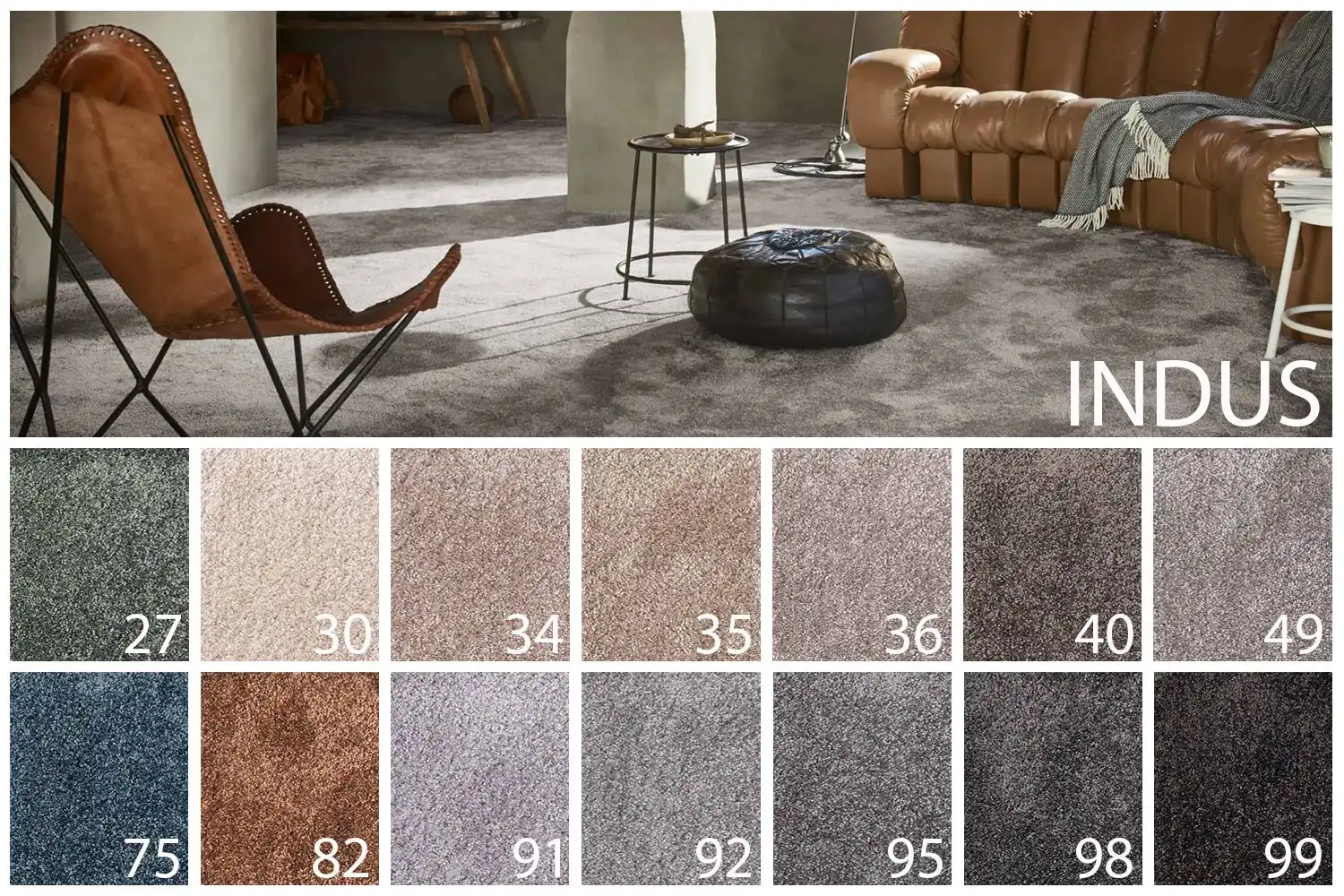 Koberec Indus je polyesterový velurový koberec ve více zajímavých barvách s jemným odleskem. Vyrábí se na kvalitním ECO FusionBac podkladu vyrobeném ze 100% recyklovaných PET lahví. Filcový podklad prodlužuje životnost koberce, zvyšuje tepelně izolační vlastnosti a pohodlí při chůzi. Barvy a typ koberce působí elegantně, čímž zútulní klasický i moderní interiér. Díky výšce vlákna a filcovému podkladu je koberec měkký, příjemný na došlap a tlumí kročejový hluk. Své místo si najde především v pokojích jakými jsou ložnice, obývací pokoj a pokoj pro hosty.