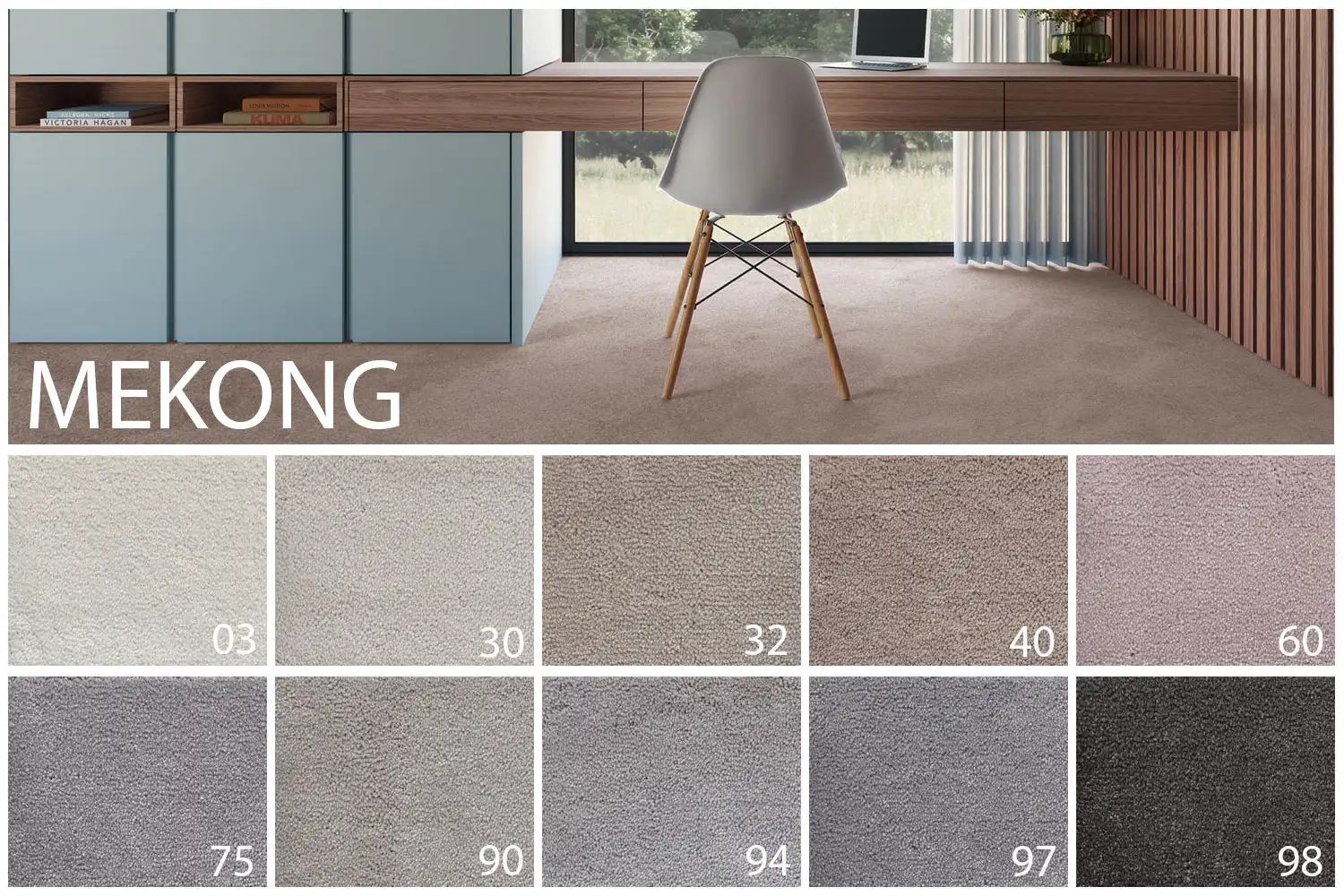 Koberec Mekong je polyesterový velurový koberec v decentních přírodních barvách. Tyto koberce se vyrábějí na kvalitním ECO FusionBac podkladu ze 100% recyklovaných PET lahví. Filcový podklad prodlužuje životnost vlákna a zvyšuje tepelně izolační vlastnosti. Působí elegantně a zútulní každý interiér. Díky výšce vlákna a filcovému podkladu je koberec měkký, příjemný na došlap a tlumí kročejový hluk. Jeho jemnost oceníte především v ložnici, v obýváku nebo dopřejete pohodlí pro chodidla své návštěvě v pokoji pro hosty.