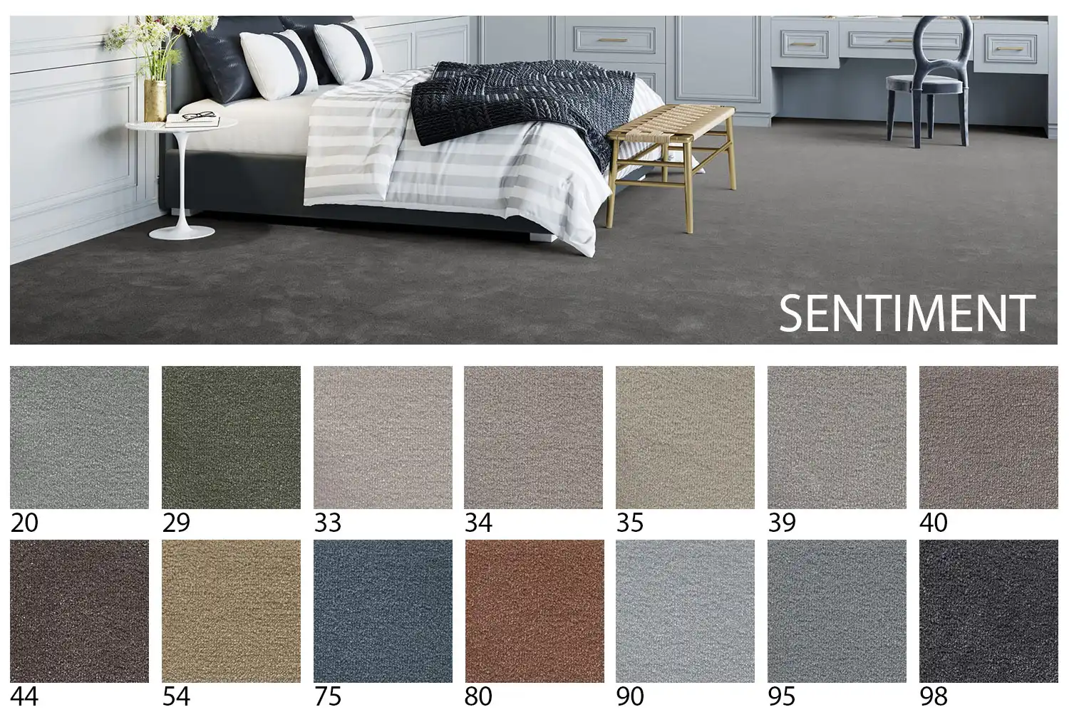 Koberec z luxusní kolekce Sentiment Vás při chůzi zaplaví intenzivním pocitem radosti, zvedne Vám náladu a inspiruje Vás posunout koberec jako interiérovou dekoraci na novou úroveň. Zvolte rafinovanost a eleganci stylovým způsobem, jak znát dotek odolné jemnosti. Je vyráběn z kvalitních polyamidových vláken s podkladem FusionBac, který zvyšuje tepelně izolační vlastnosti, pevnost, odolnost a luxusnost vlákna. Prožijte své volné chvilky v diskrétních a jemných tónech v obývacím pokoji, v ložnici, v pokoji pro hosty, v pracovně nebo je věnujte hostům v hotelu, zaměstnancům v kanceláři nebo v konferenční místnosti.