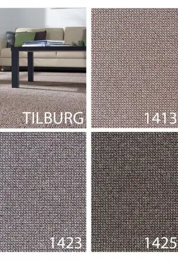 Koberec Tilburg/Titan je polypropylenový uzlíkový metrážní koberec, vyráběný v různých barevných odstínech v přírodních barvách. Díky vyšším a nižším uzlíkům vytváří 3D efekt. Je vyráběn s filcovým podkladem, který zvyšuje tepelně izolační vlastnosti a prodlužuje životnost vlákna. Působí elegantně a zútulní každý interiér. Své místo si najde především v bytových prostorách jako jsou ložnice, obývací pokoj nebo chodba.